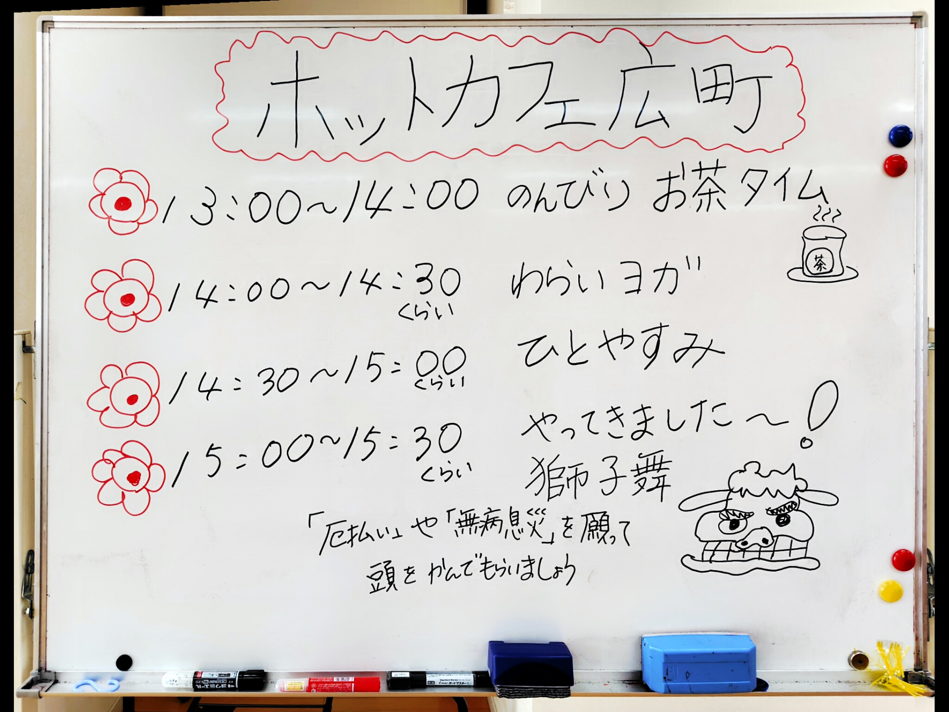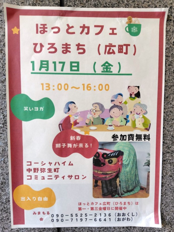 ほっとカフェ広町は、毎月第3・第4金曜日に開催されています。