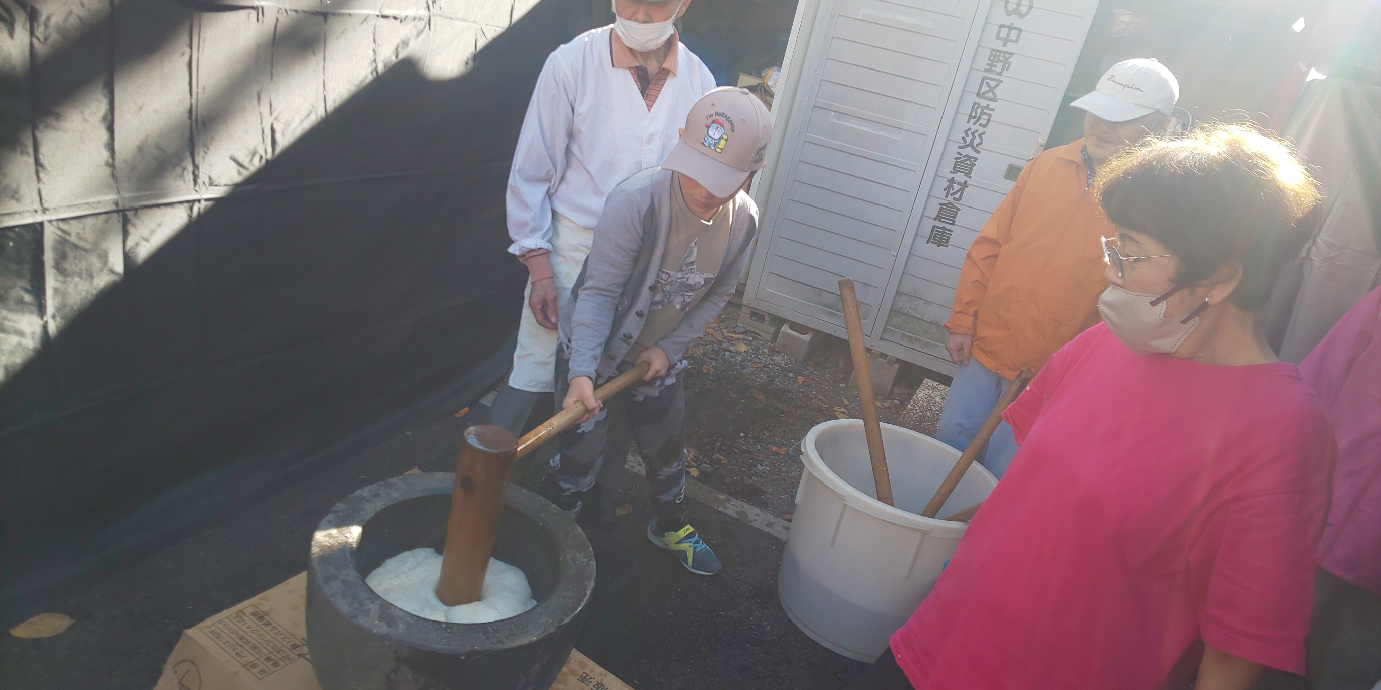中野区は各町会で年末に餅つきをしている所が多いのですが、この日も子供たちが、熟練の方に支えられて餅つきを体験されていました。