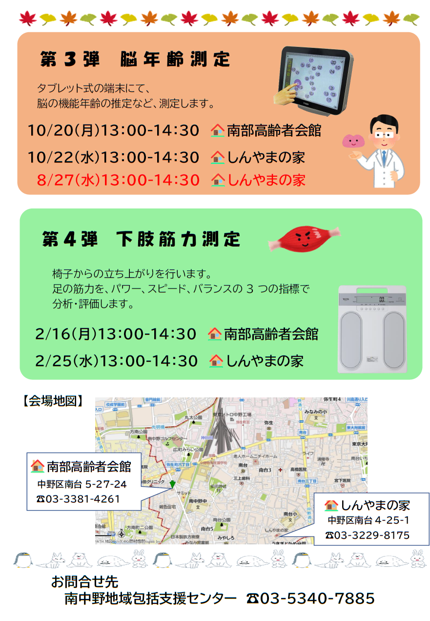 【南中野包括】8/27 健康測定会 機材変更のお知らせ