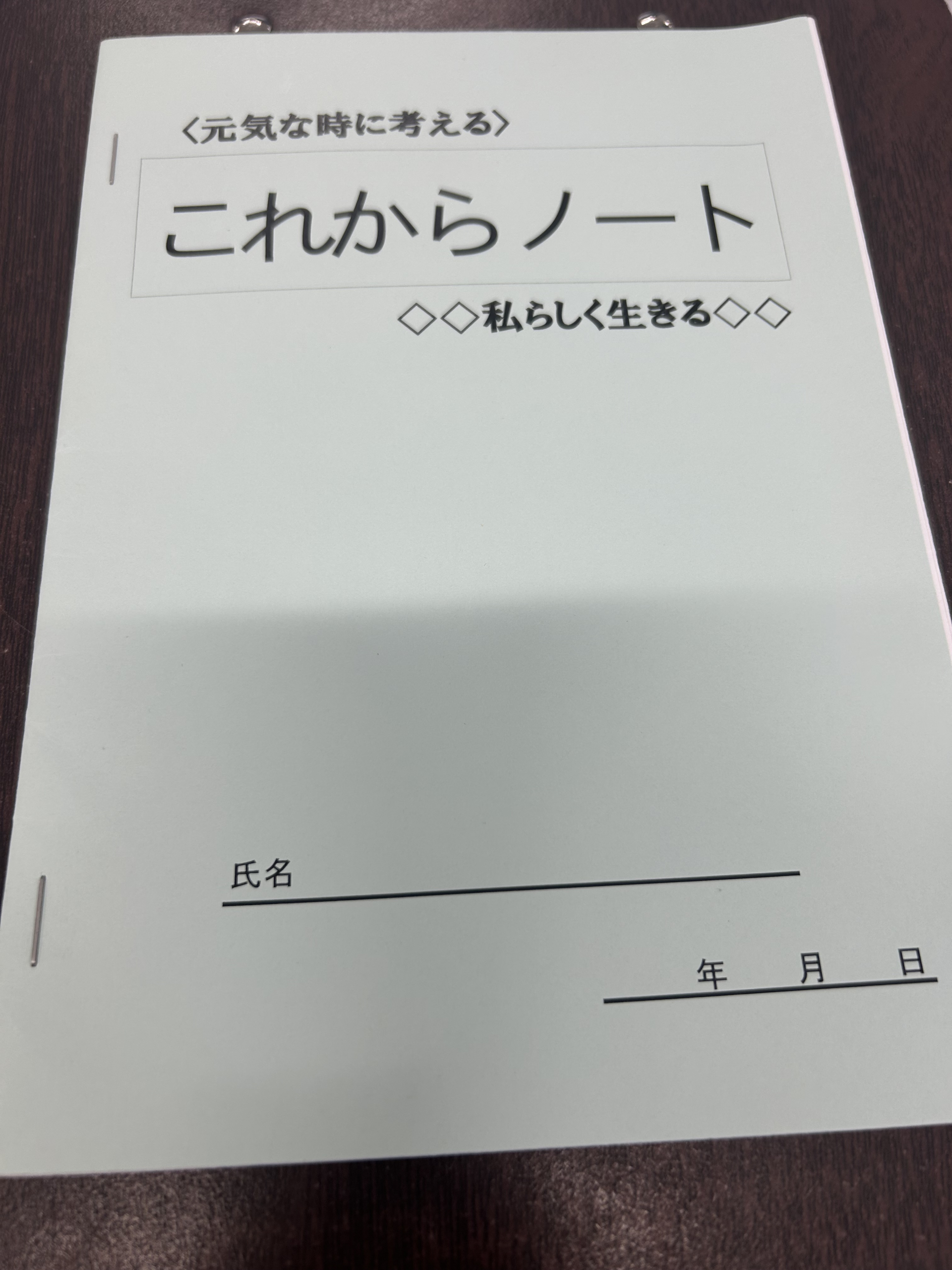 「これからノート」欲しい方いらっしゃいましたら、包括にも数冊頂いていますので、お声がけしてください。