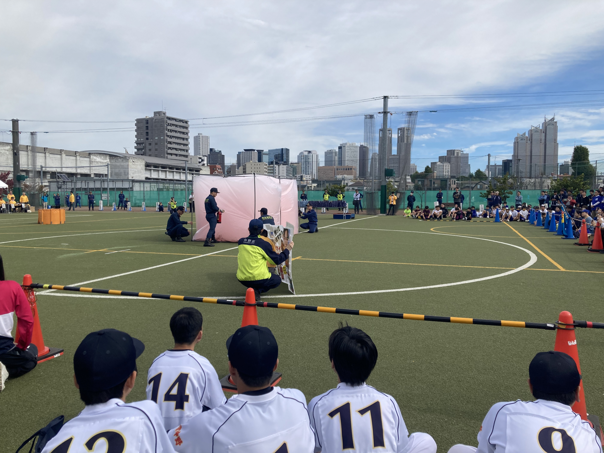 この防災訓練とバケツリレーは中野区では北部エリアと南部で交互に開催されるとの事です。