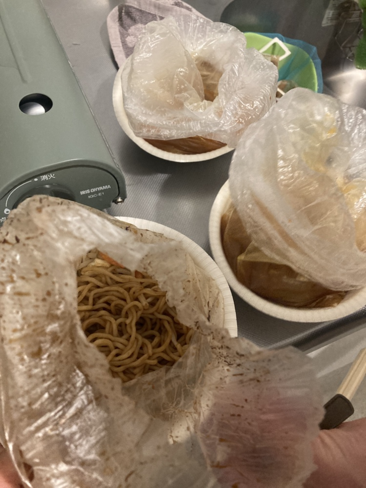 カップラーメンは水で戻せるのか・・の実験も、まあまあ美味しかったです。