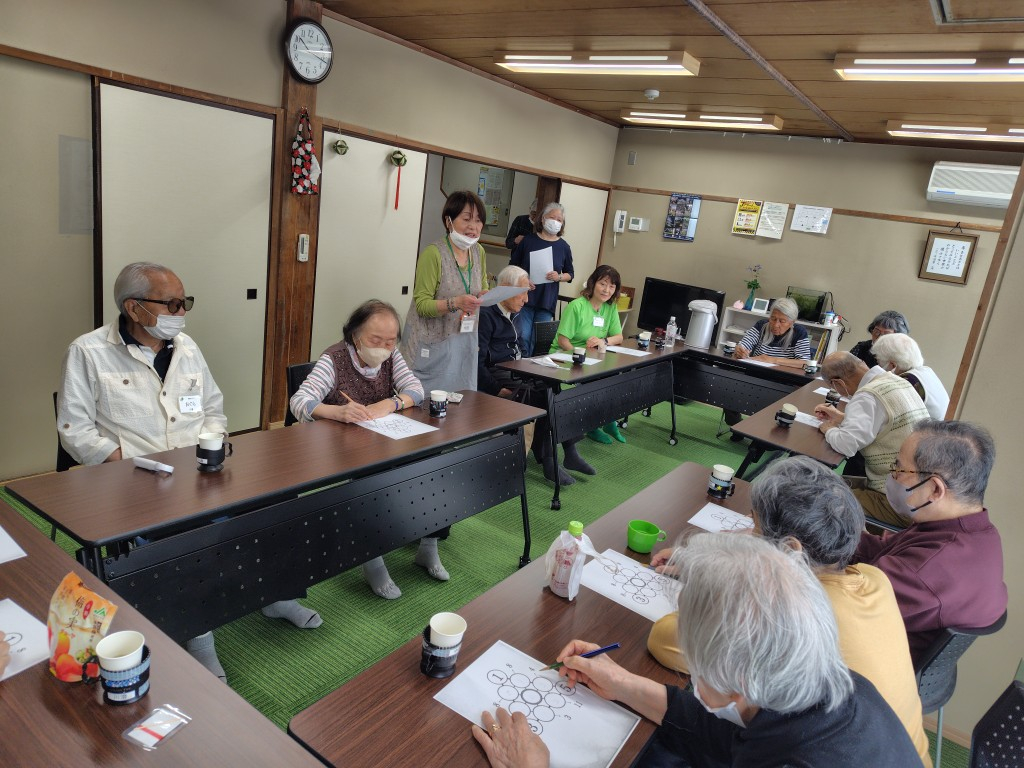 脳トレの時間にお邪魔しましたが、横の人同士で、相談しながら回答を埋めていらっしゃいました。