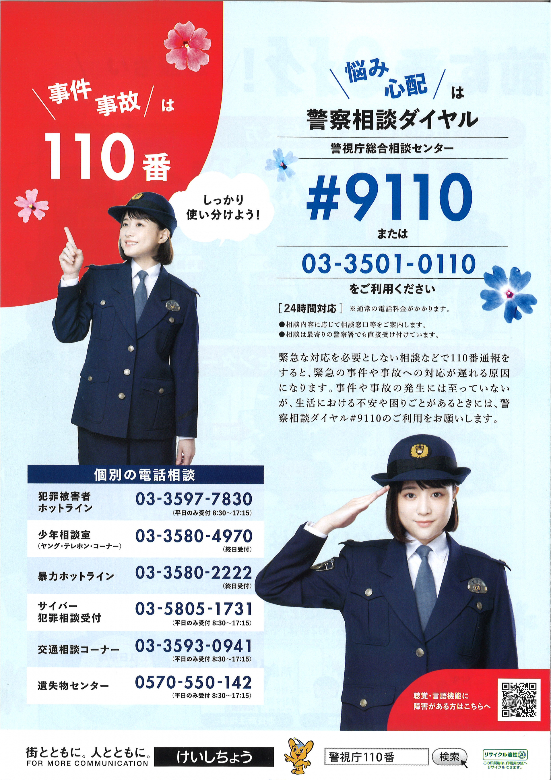2025.04.30 お知らせ 【仲町包括】警察相談について Tweet シェアする 警察のお悩み相談窓口は内容によって電話番号が決められております。速やかに相談先へ繋がる事も重要です。 前の記事 2025.05.02 お知らせ 【仲町包括】特殊詐欺の被害にご用心を 次の記事 2025.04.30 お知らせ 【仲町包括】じまん展の応募 一覧へ戻る