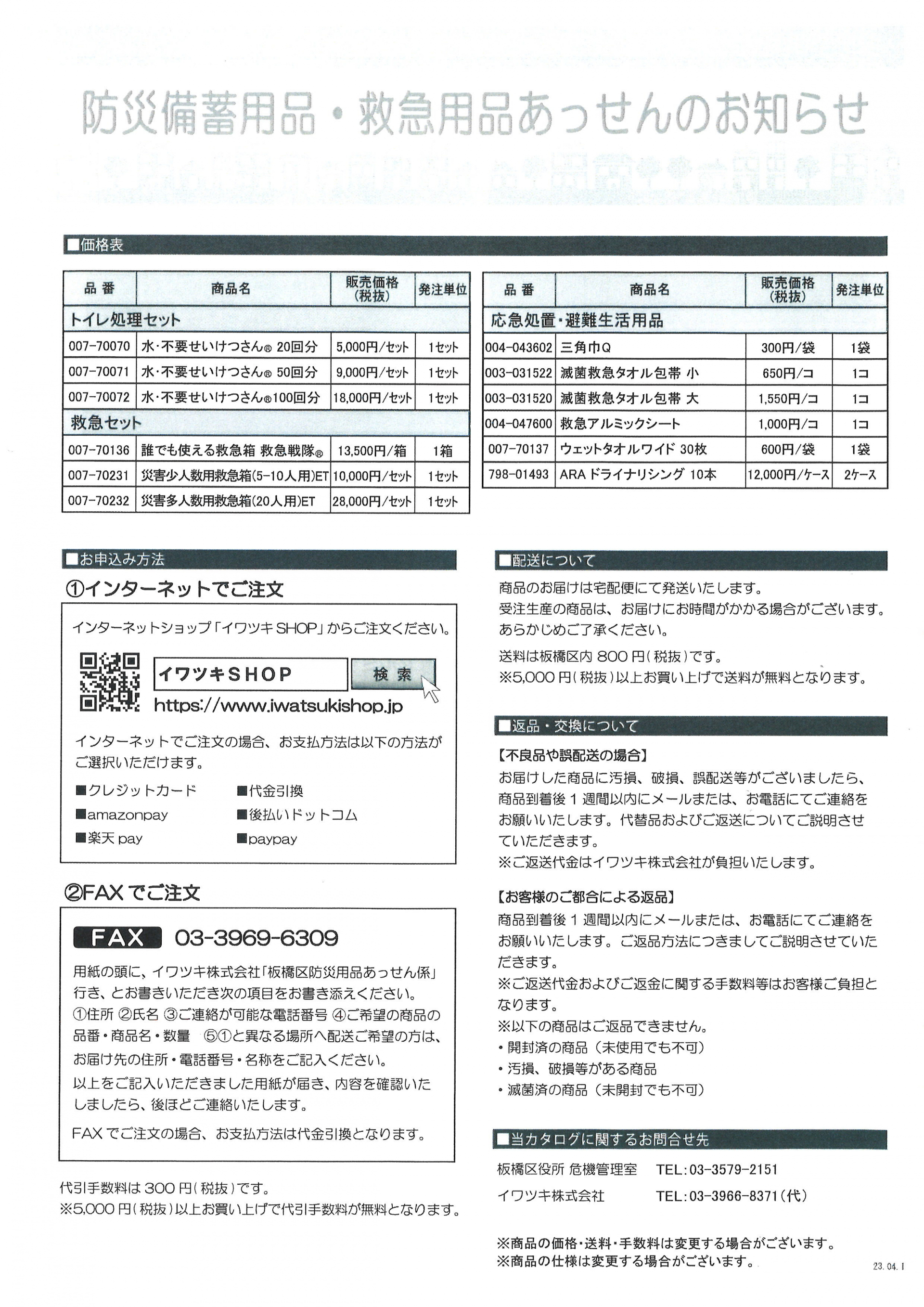 2024.07.12 お知らせ 【仲町包括】防災備蓄品のご案内 Tweet シェアする 前の記事 2024.07.13 お知らせ 【仲町包括】板橋のいっぴん 次の記事 2024.07.09 お知らせ 【仲町包括】新任のご挨拶 一覧へ戻る