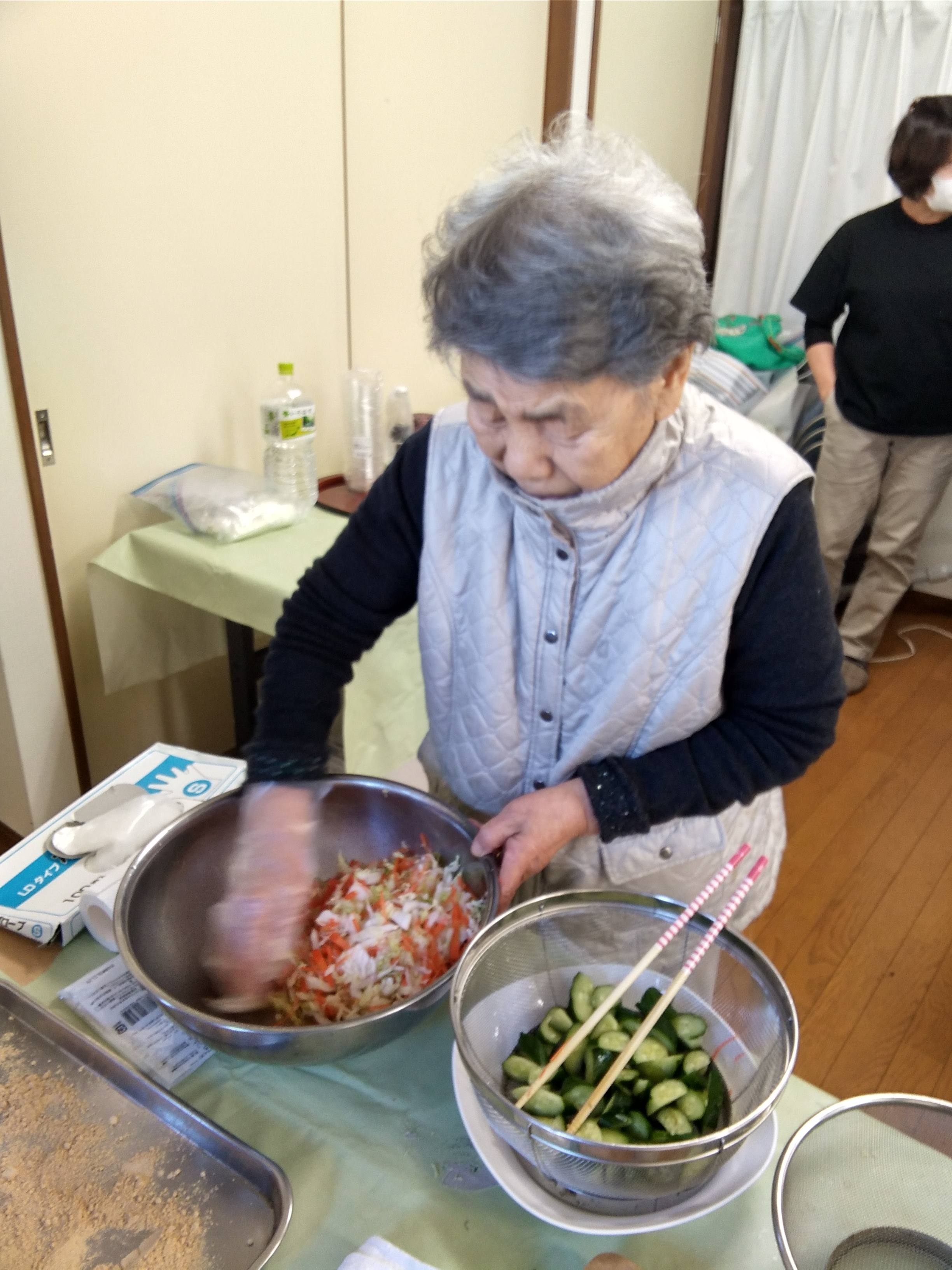 今回は運営スタッフ以外にも利用者の方も手伝ってくださいました。見事な包丁捌きできれいに野菜を切って盛り付けもバッチリでした!
