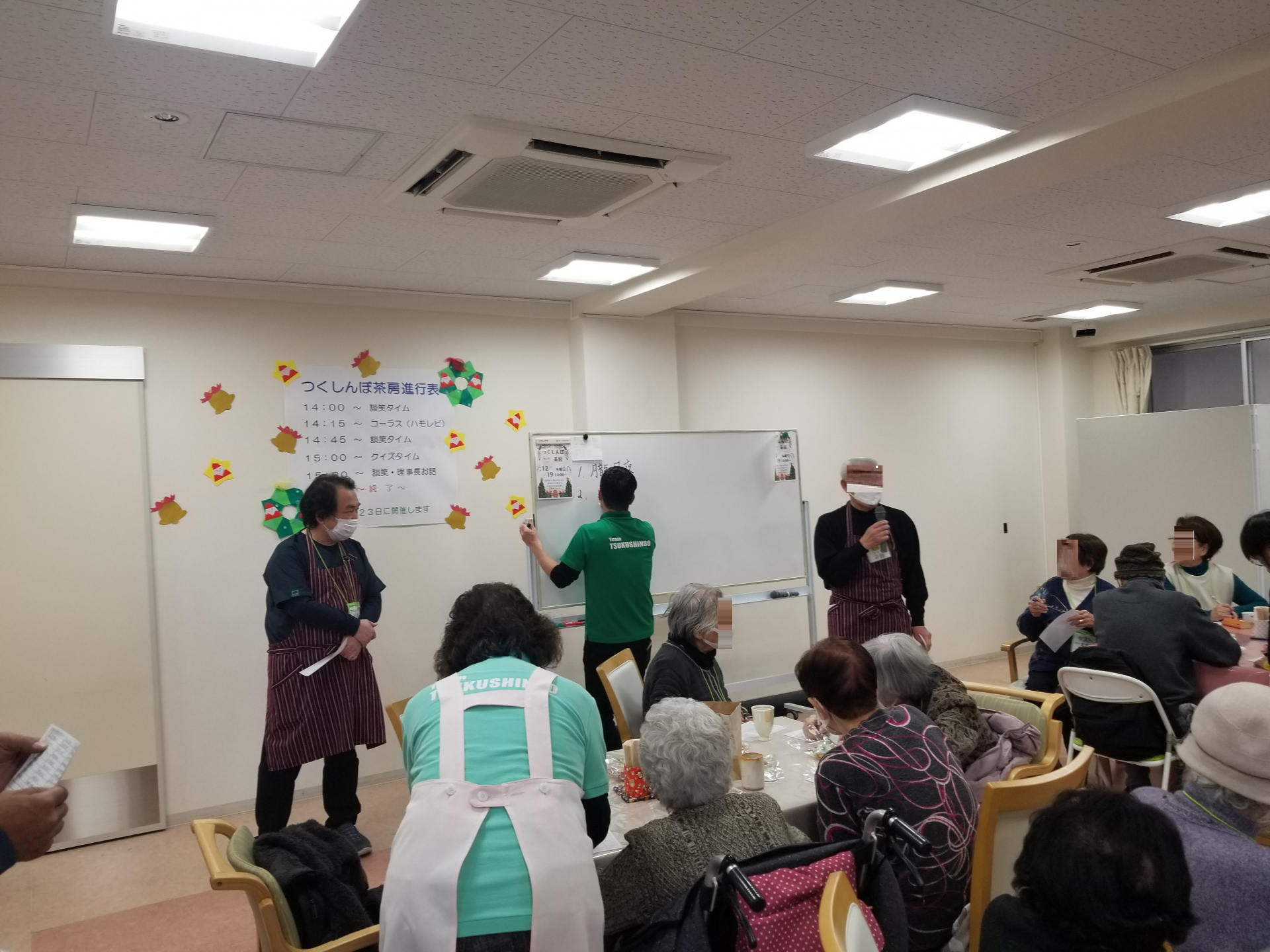 つくしんぼ茶房は毎月開かれている、住民交流の居場所です。当日は若い方から高齢の方(なんと 最高齢102歳!!)