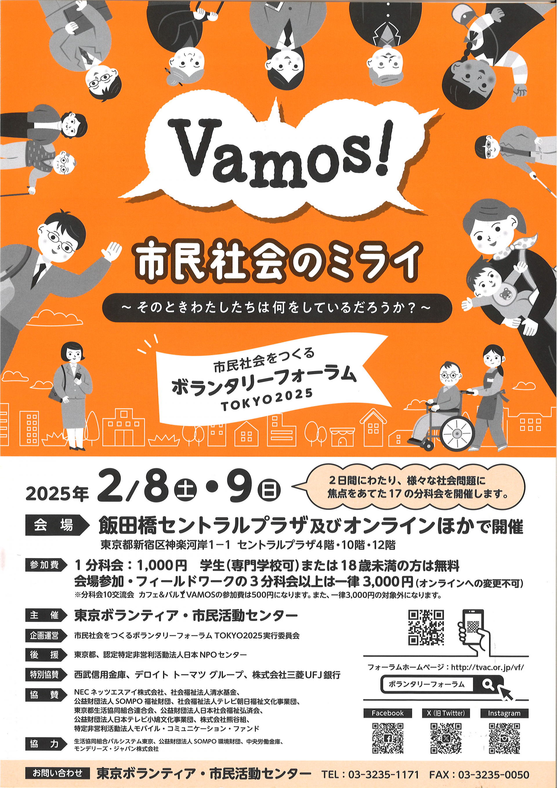 令和7年2月8日・9日 に「市民社会をつくる ボランタリーフォーラムTOKYO2025」が開催されます。