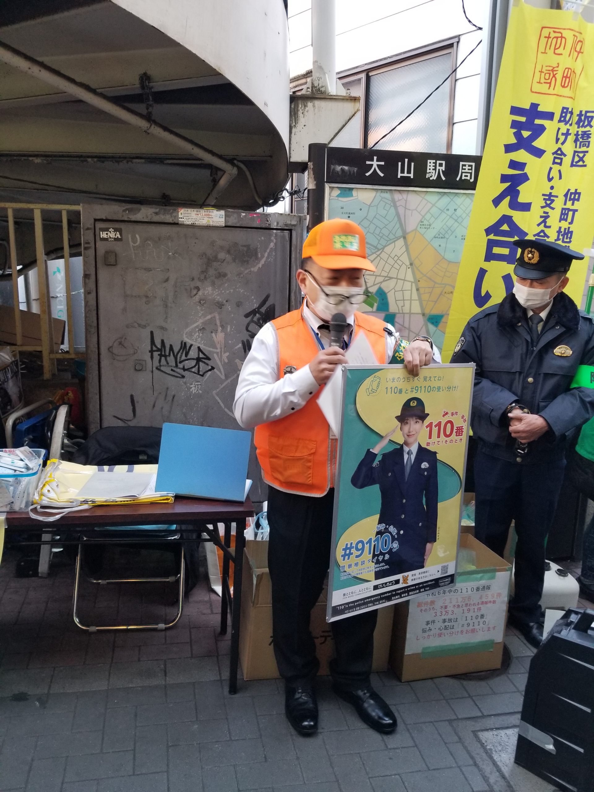 1月10日は、110番の日ということで板橋区大山駅南口において、イベントがありました。
