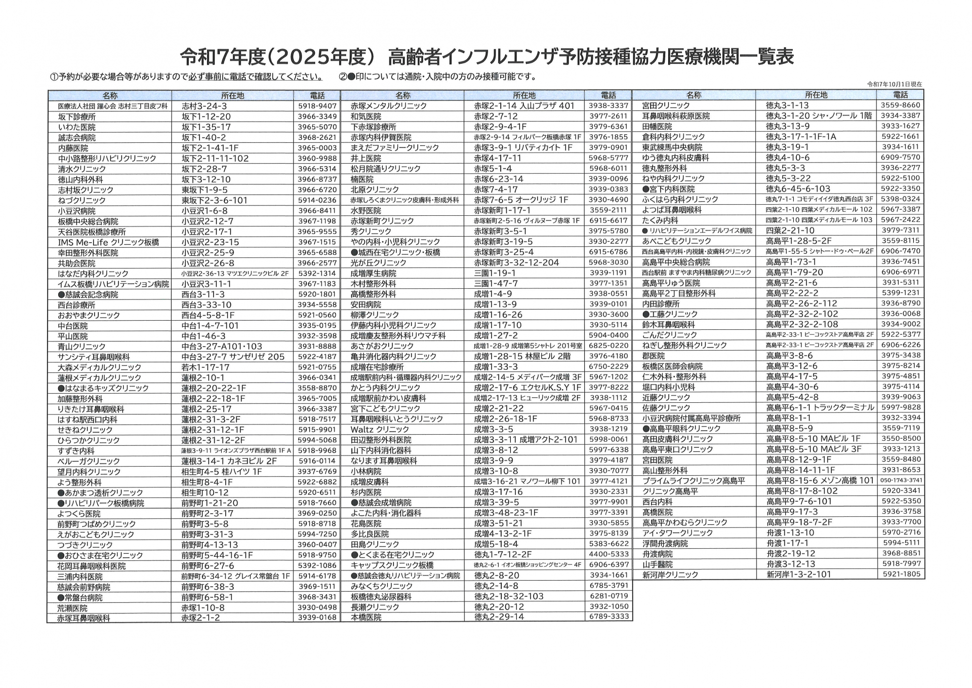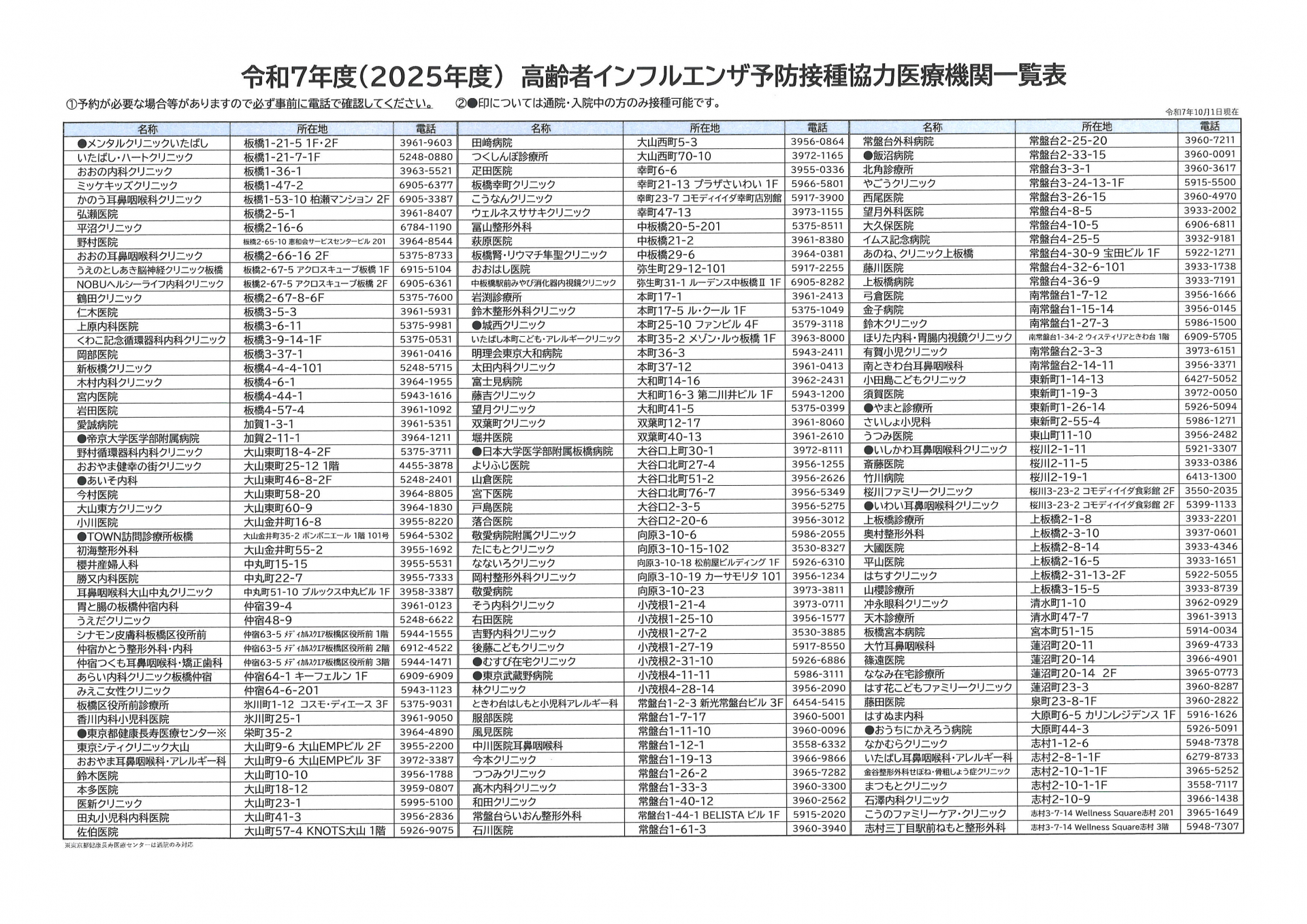 上記医療機関は、板橋区インフルエンザ予防接種協力機関の一覧です。