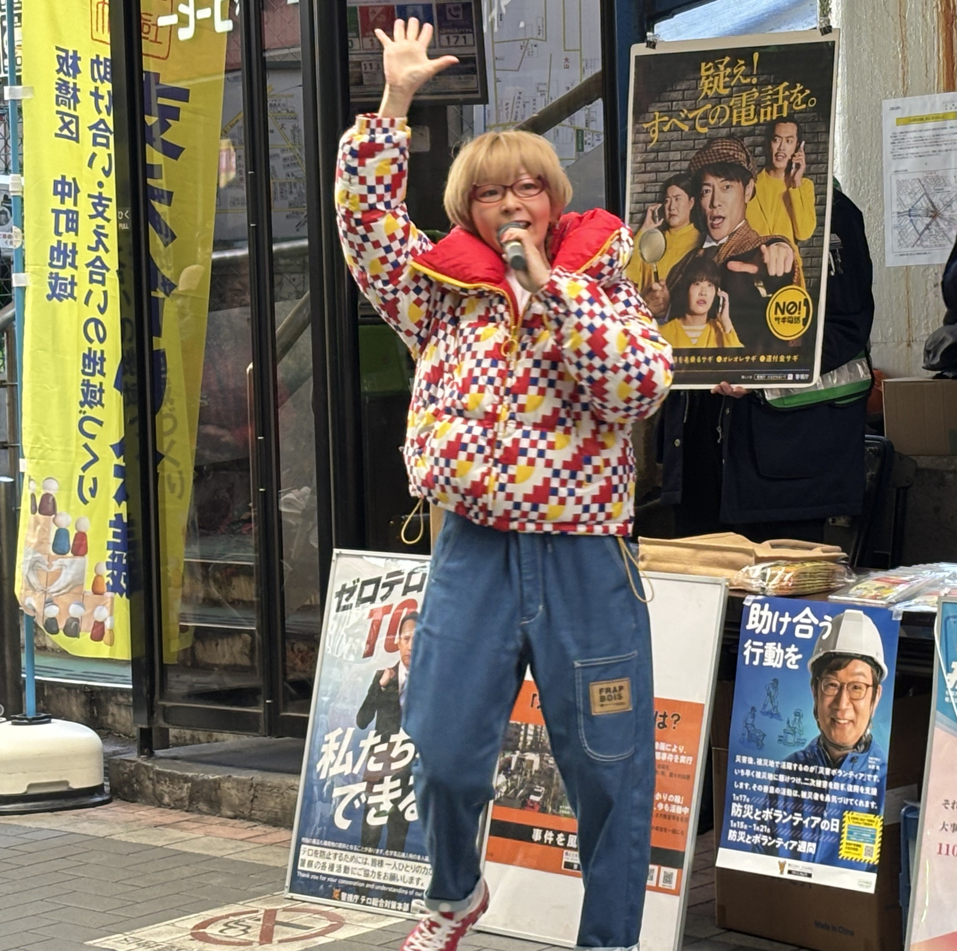 その後、参加者全員で、大山駅や商店街を利用している方々に、【#9110番】のPRを行いました。