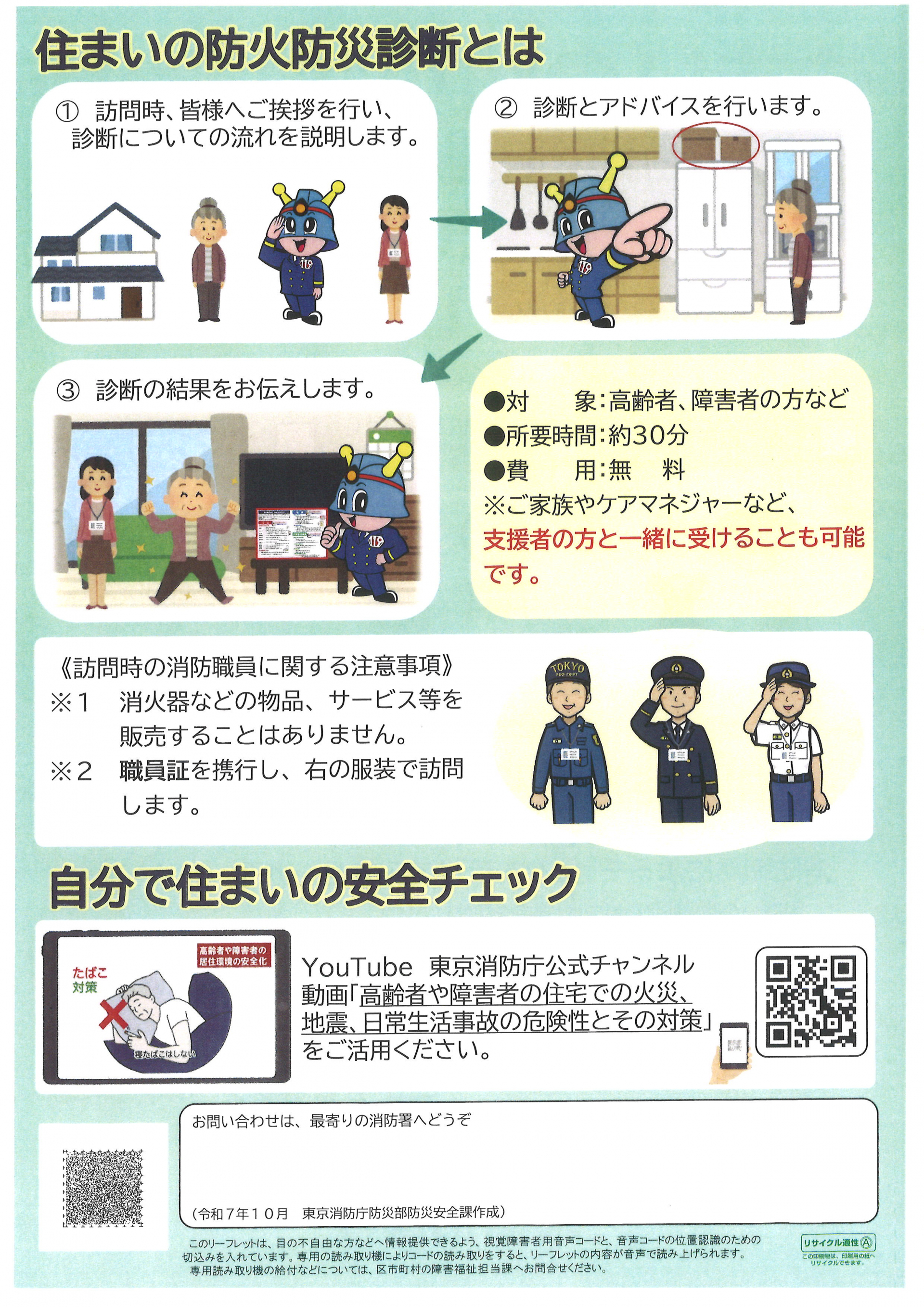 2026.01.11 お知らせ 【仲町包括】防火診断 Tweet シェアする ご自宅内に人を入室させたくない方。防火診断くらいは行った方が良いと思われます。 前の記事 2026.01.22 お知らせ 【仲町包括】ACP講座を開催しました 次の記事 2026.01.08 お知らせ 【仲町包括】110番の日 イベントに参加してきました。 一覧へ戻る