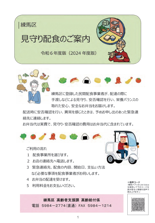 練馬区に登録した民間配食業事業者が、配達の際に手渡しなどによる見守りや安否確認を行います。
