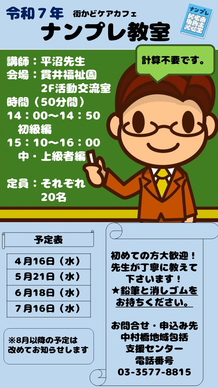 お申込み・お問合せは、中村橋地域包括支援センターまでお願い致します。