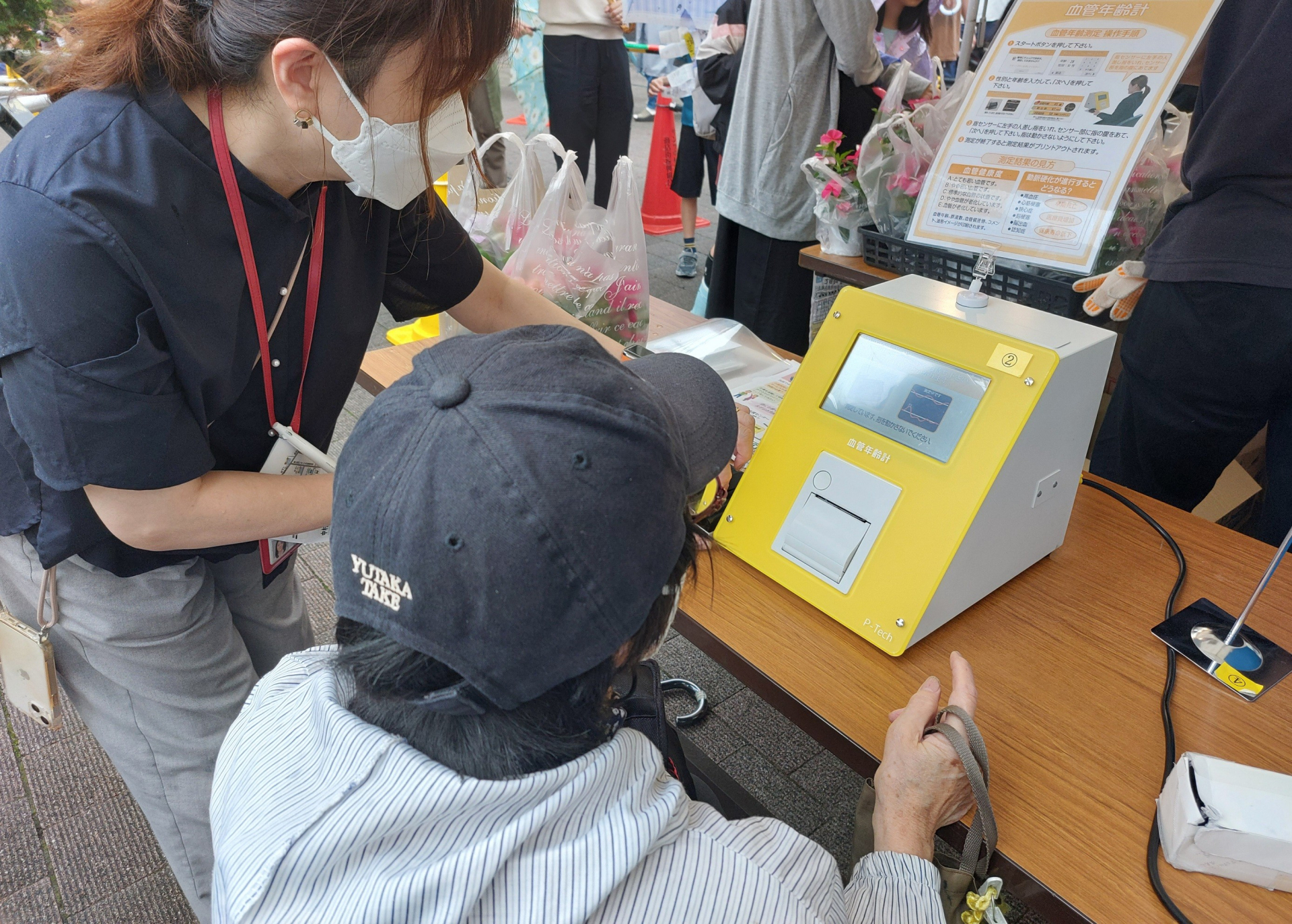 前回は認知症クイズを行いましたが、今回は血管年齢測定で参加させていたしました。