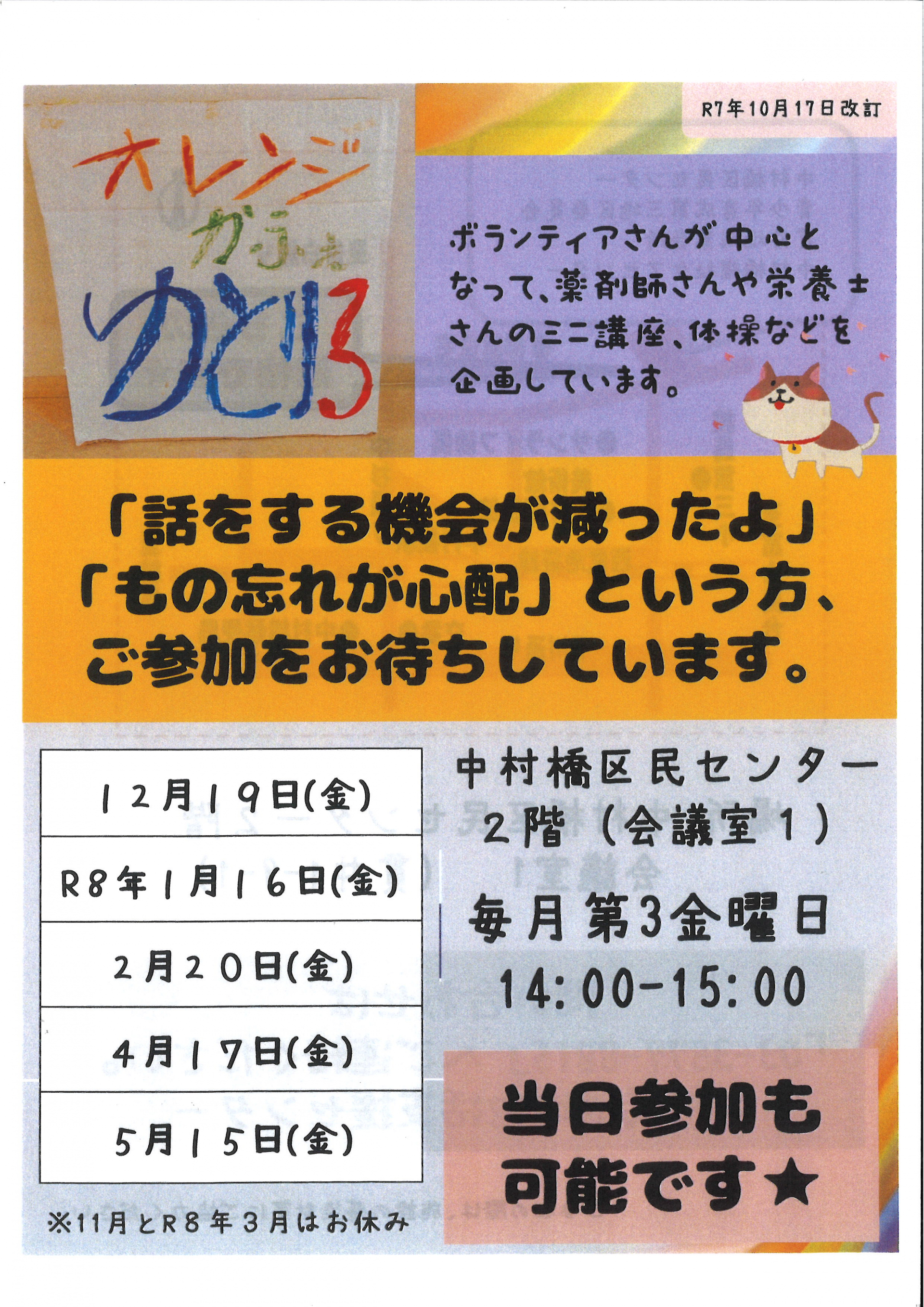 〖オレンジカフェゆとりろ〗は <毎月第3金曜日> に開催しています。