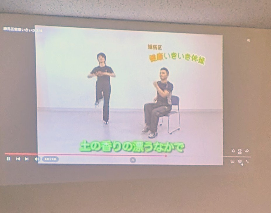 動画を見ながら、椅子に座って行うストレッチや体操を行いました。