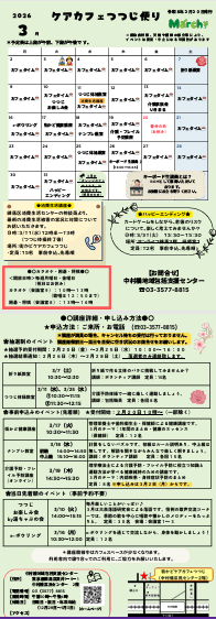 2026.02.20 お知らせ 【中村橋包括】【街かどケアカフェつつじ】つつじ便り3月号 Tweet シェアする お待たせいたしました。 つつじ便り3月号を作成いたしましたのでお知らせいたします。 みなさまのご利用をお待ちしております。 一覧へ戻る