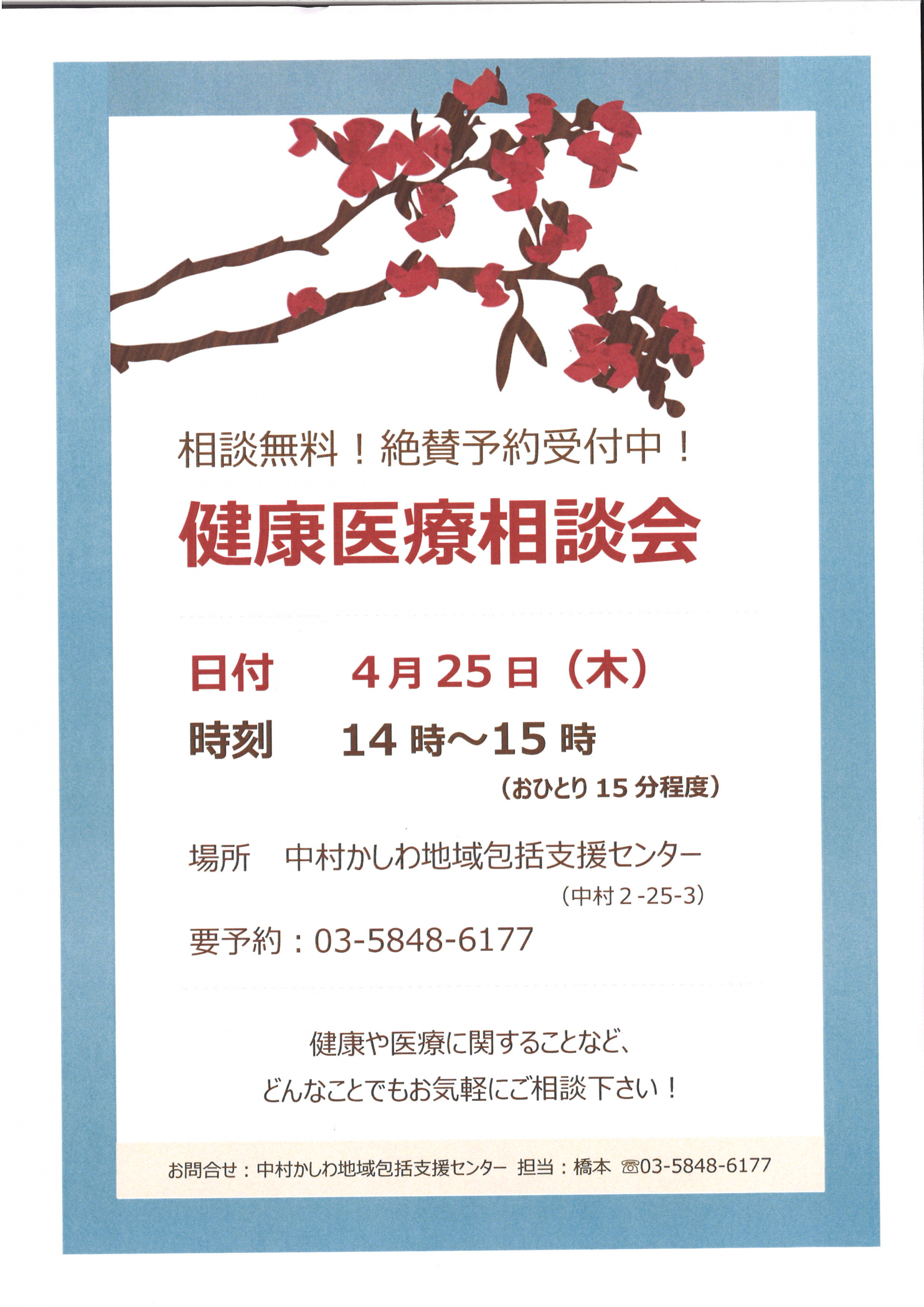 【ケアカフェかしわ】健康医療相談会を開催します!