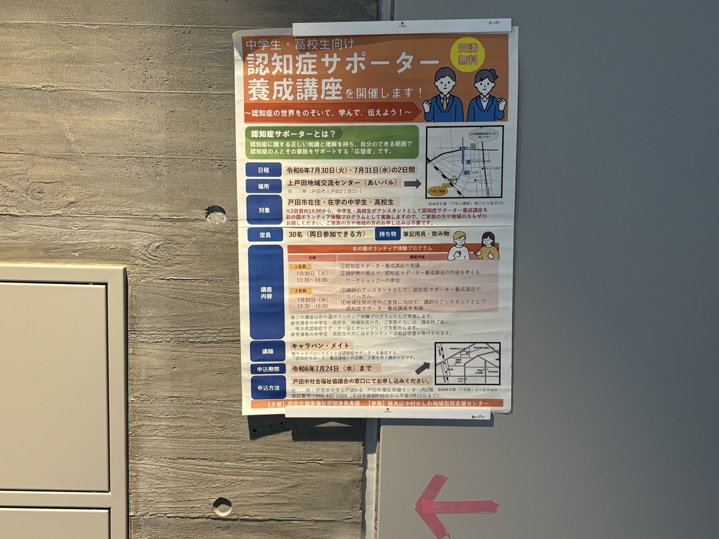 7/31は戸田市民向けに中高生も一緒に講師として登壇し、認知症サポーター養成講座を開催しました。