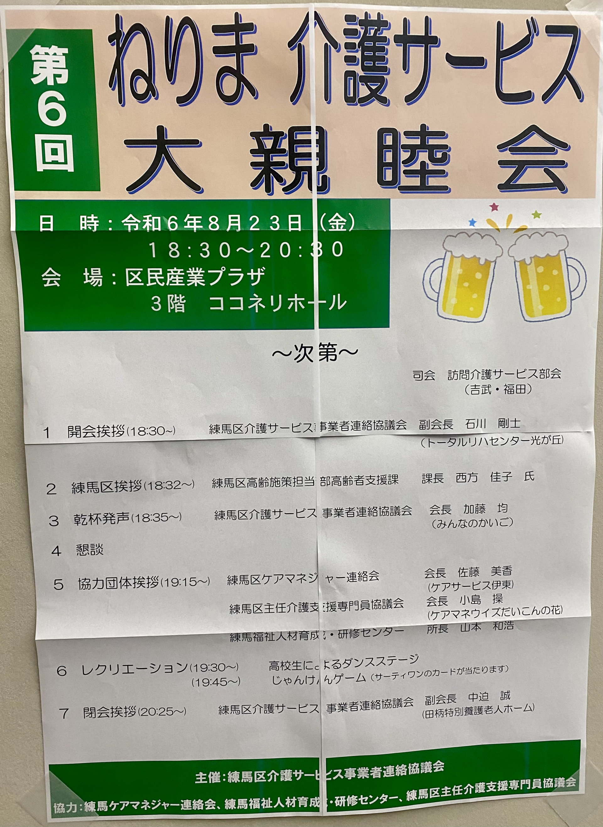 第6回ねりま介護サービス大親睦会に主任介護支援専門員2名で参加して来ました。
