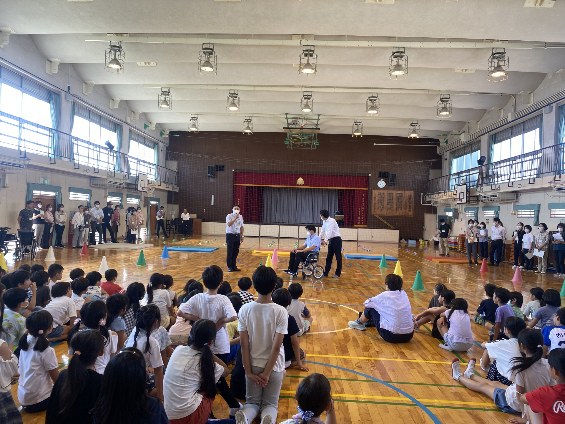 今日は、圏域内の中村小学校3年生に向けて、車イス乗車・介助体験会を実施しました。