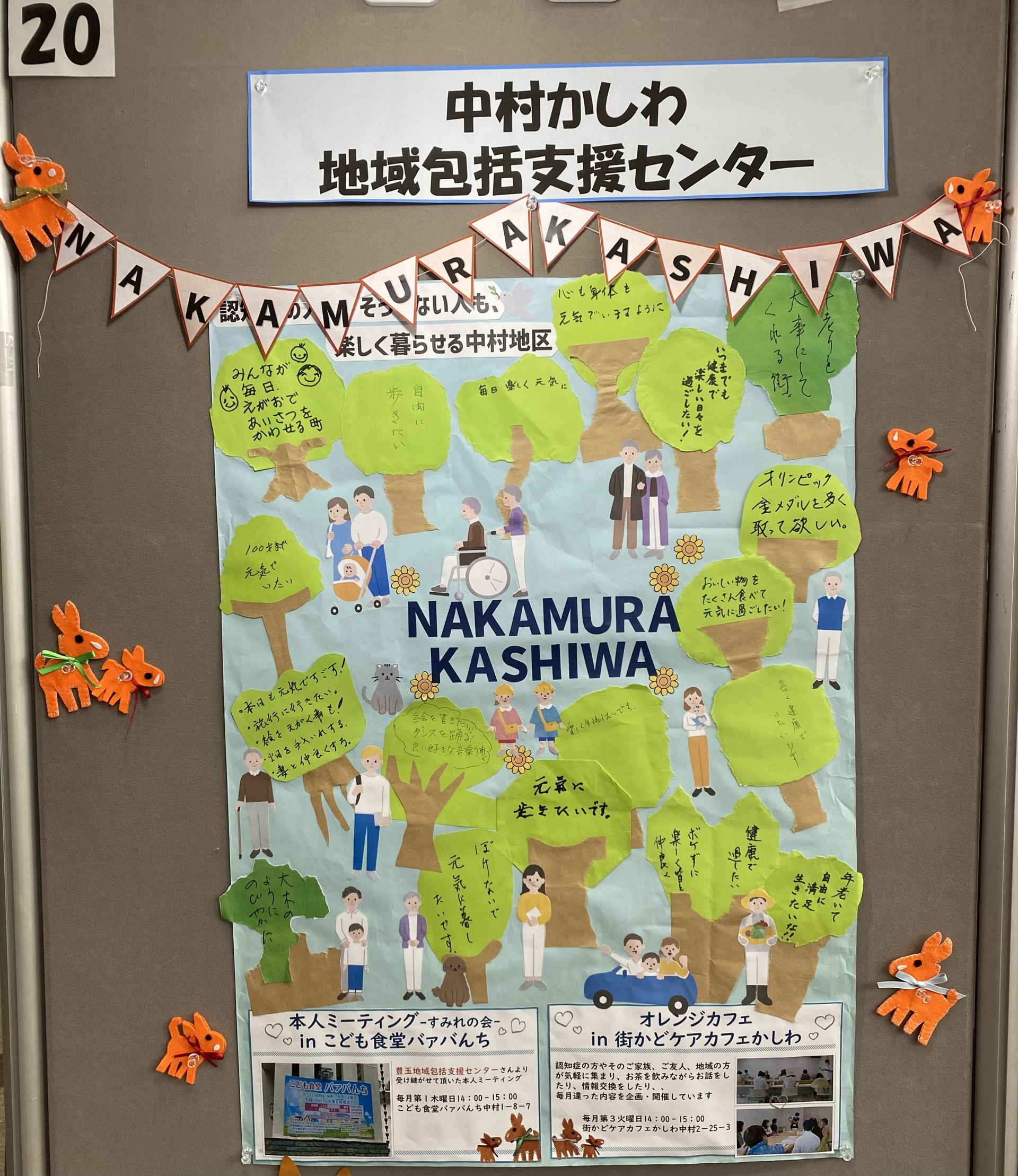 練馬圏域の7包括の名前が入ったガーランドを、当センター職員3名で作り、それも一緒に掲示しました。