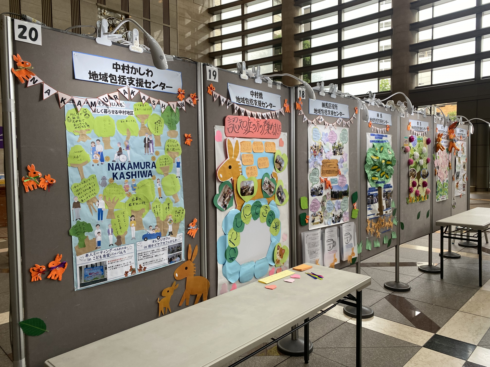 今日は、練馬区役所1Fアトリウムにて区内27地域包括支援センターの職員が、各包括支援センターの取組みの掲示に集まりました。