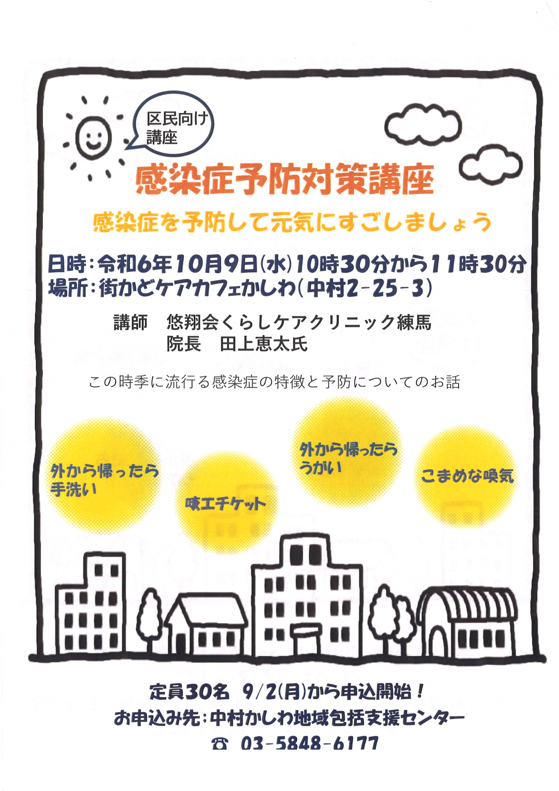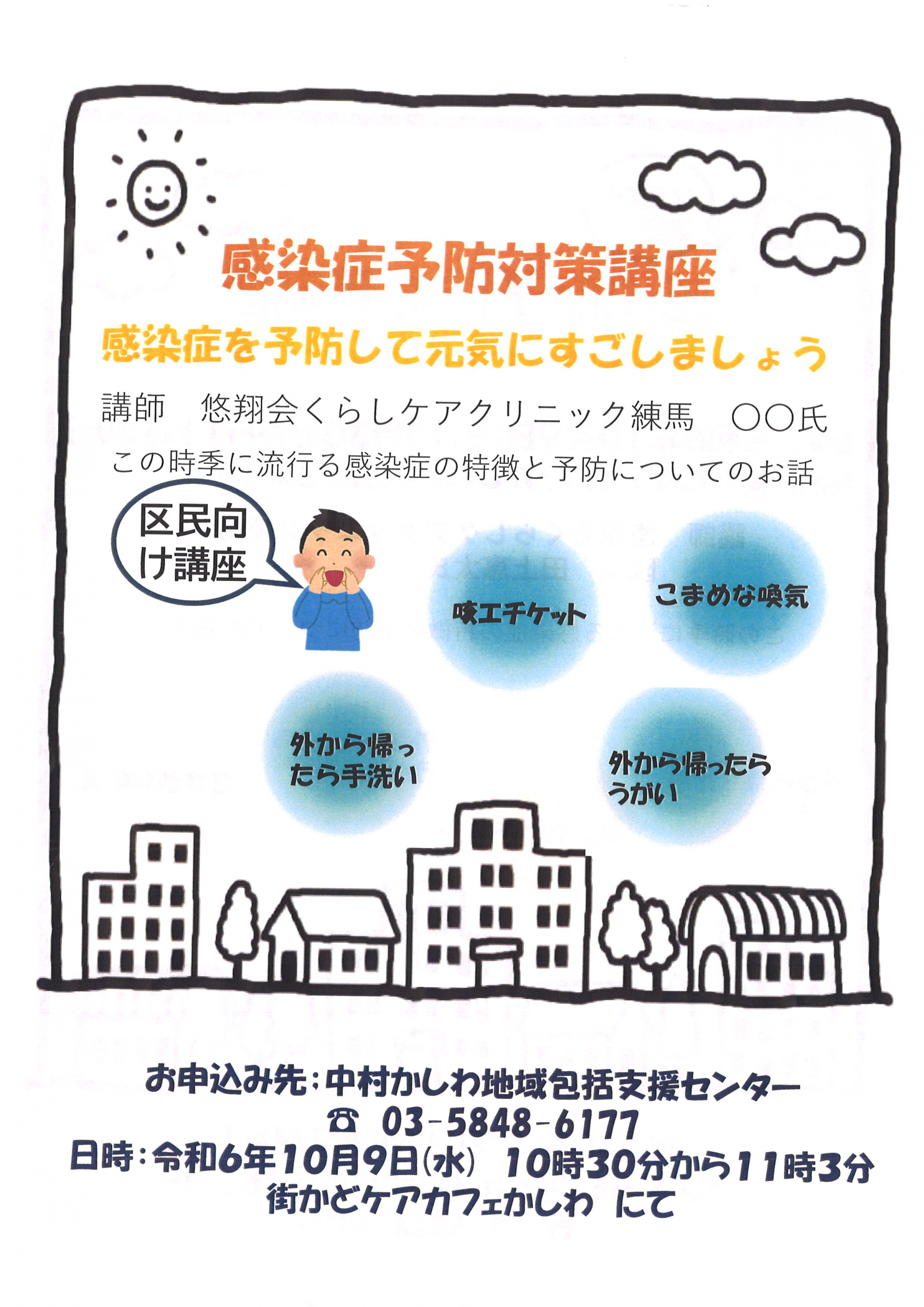 【中村かしわ包括】感染症予防対策講座を開催します。