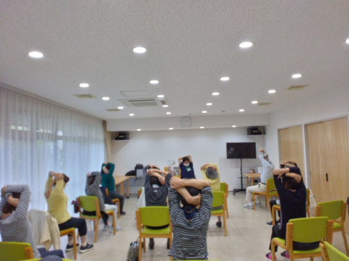 ハーモニカクラブの演奏に合わせて、歌を歌ったり、ステップを踏んだり、手足を動かす体操などもあり,とても楽しい会でした。