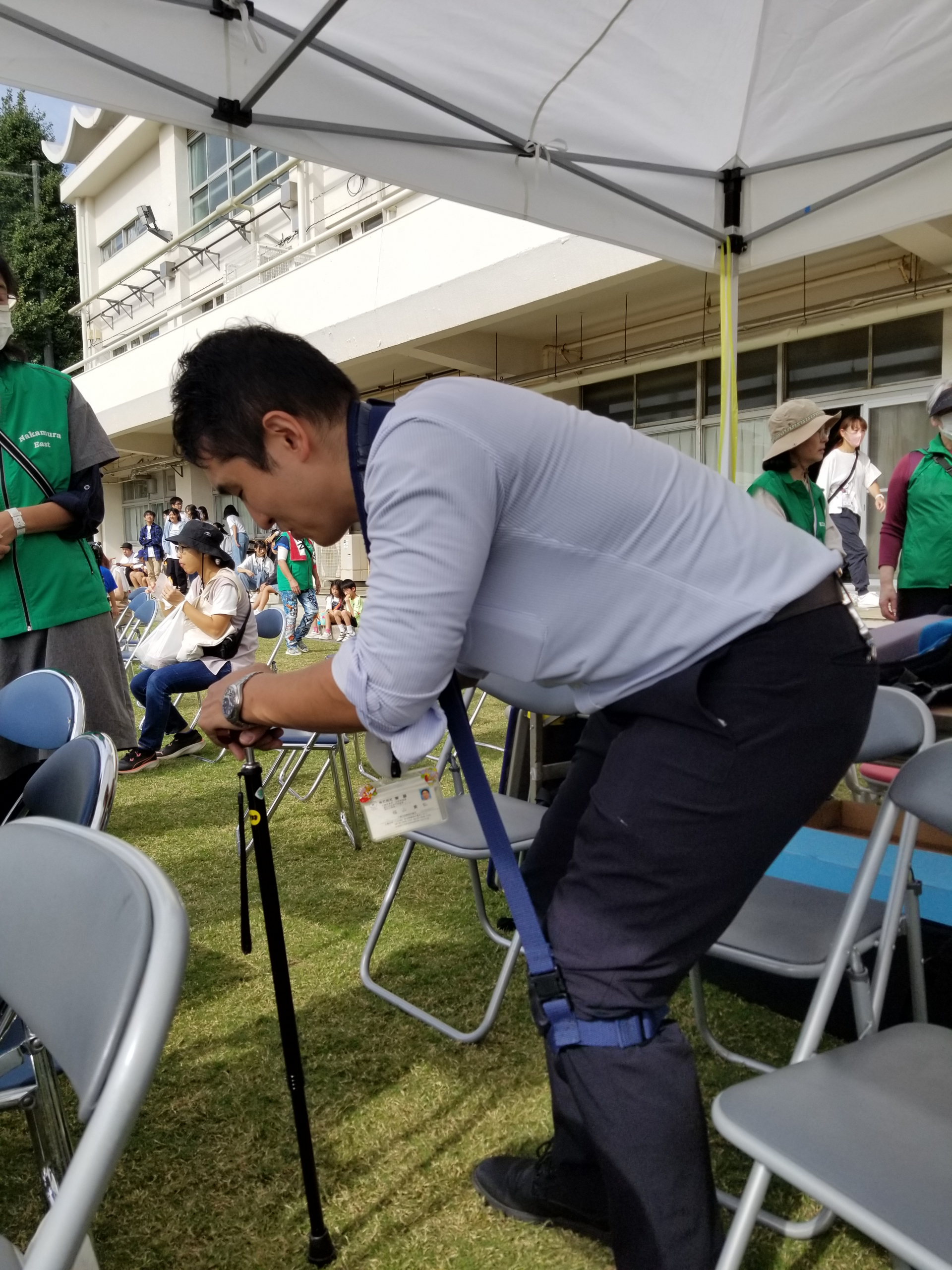 その他、協力してくれた福祉用具事業所の方がシャワーチェアや、重たい物を持つ時に楽になるパワースーツを持ってきてくれましたが、実はこれが一番人気があったかも・・・(*^-^*)