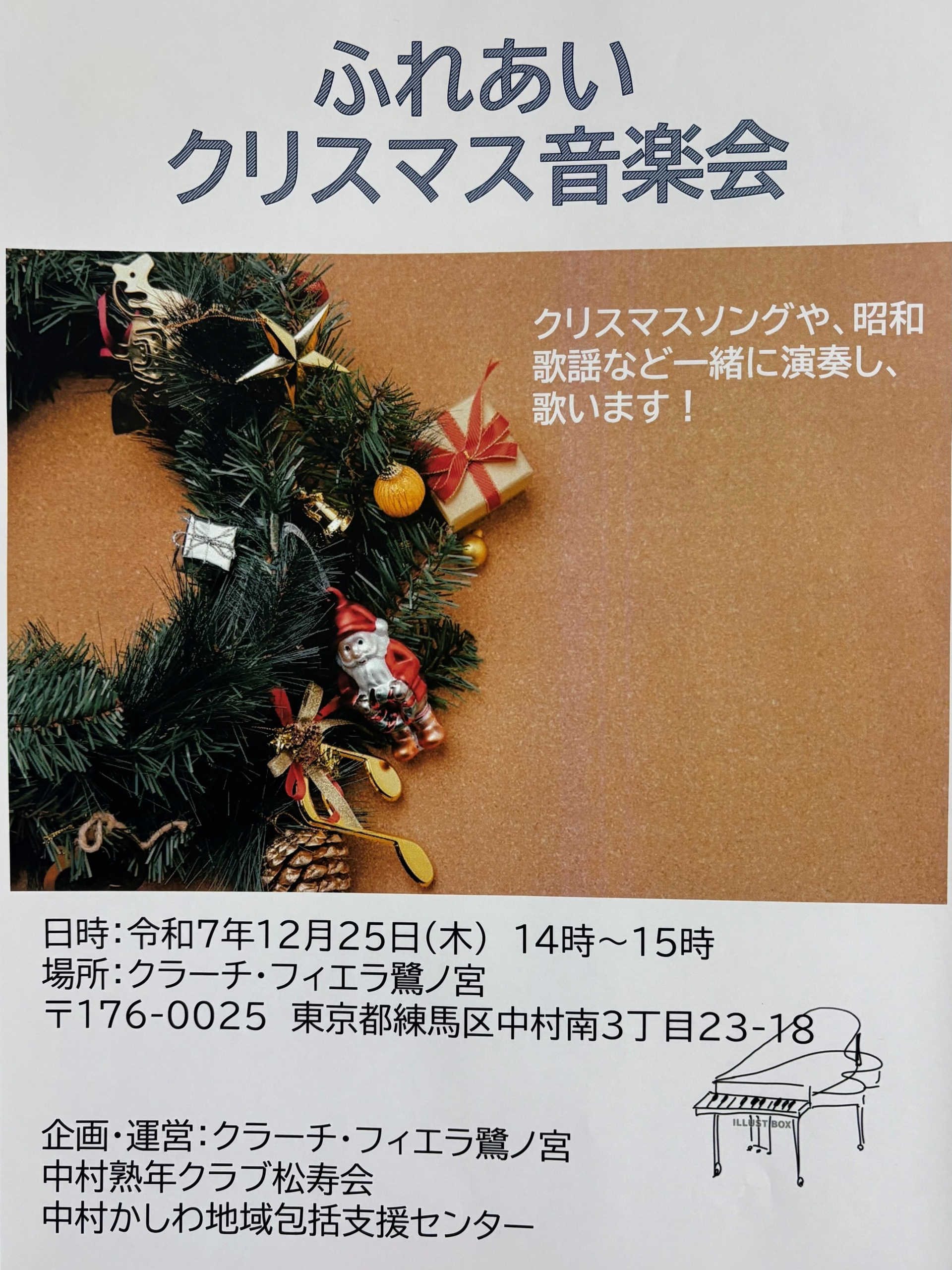 中村かしわ包括支援センターのスタッフによる、クリスマスの音楽イベントです。