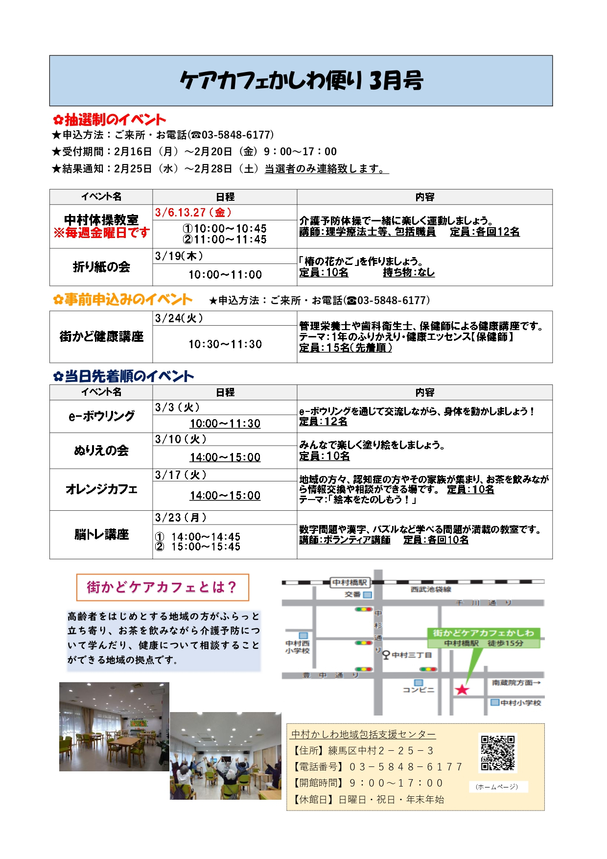 ◆これまで開催していた下記定例イベントは、ケアカフェ体制変更のため、