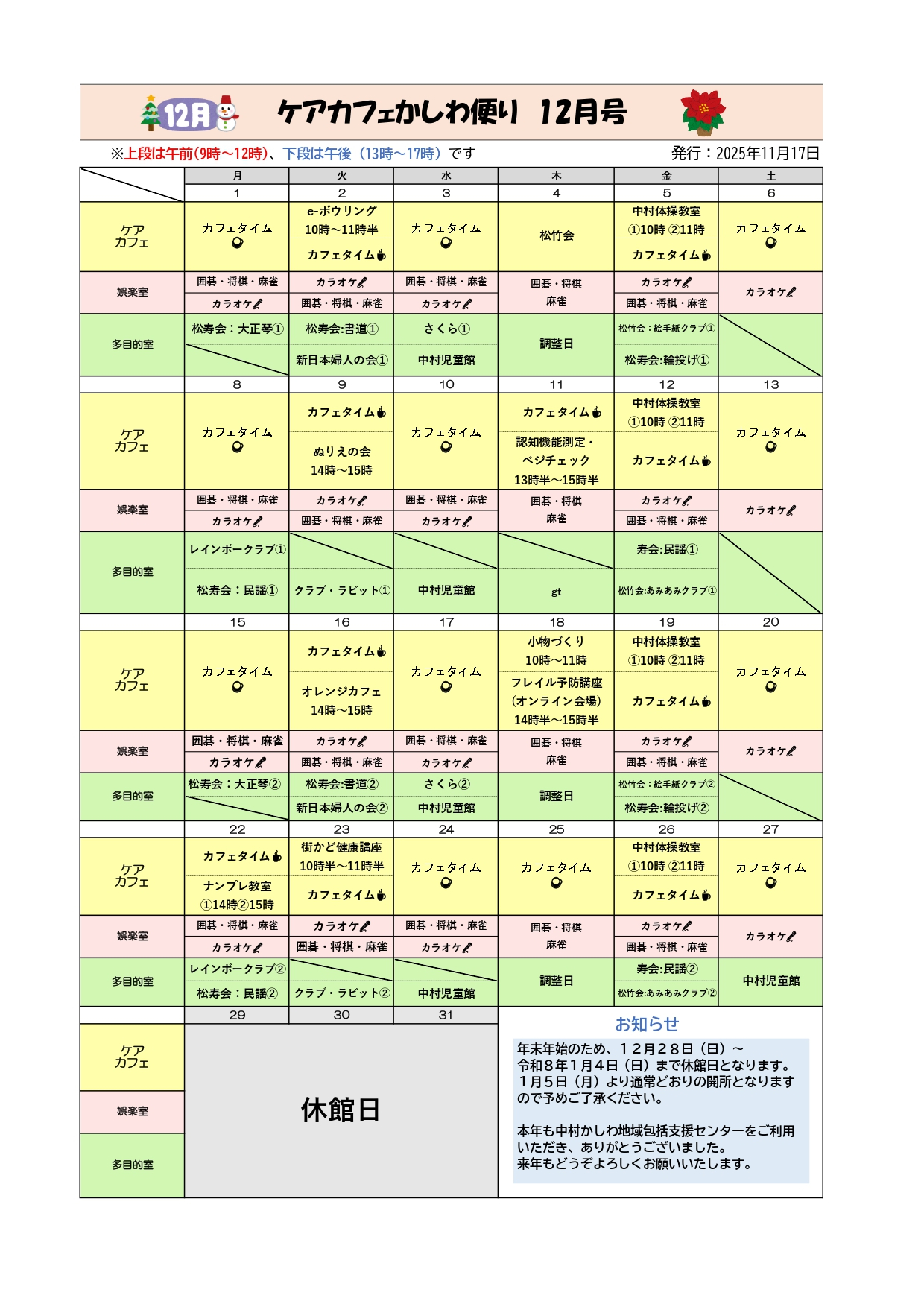 令和7年12月のかしわ便りを作成しましたので、ぜひご活用ください!