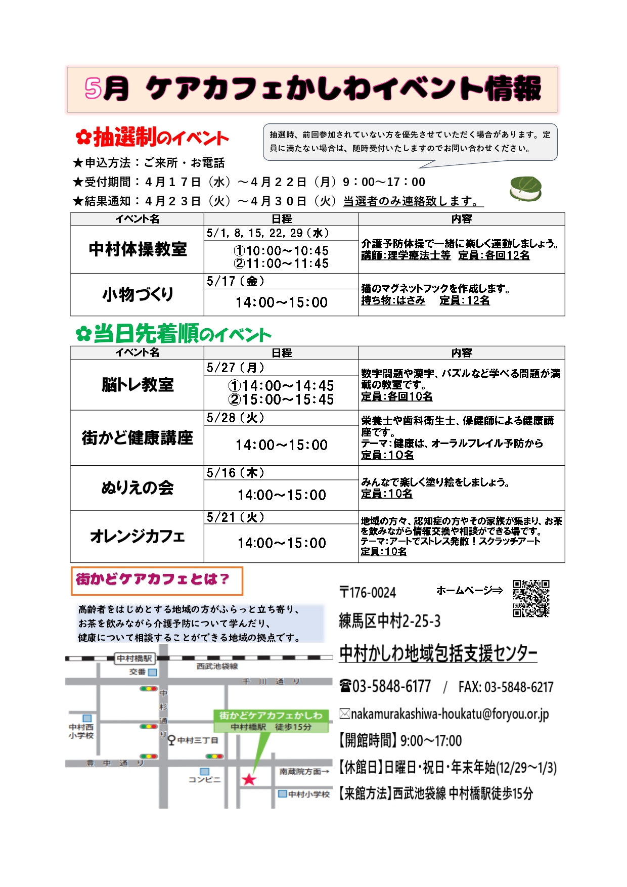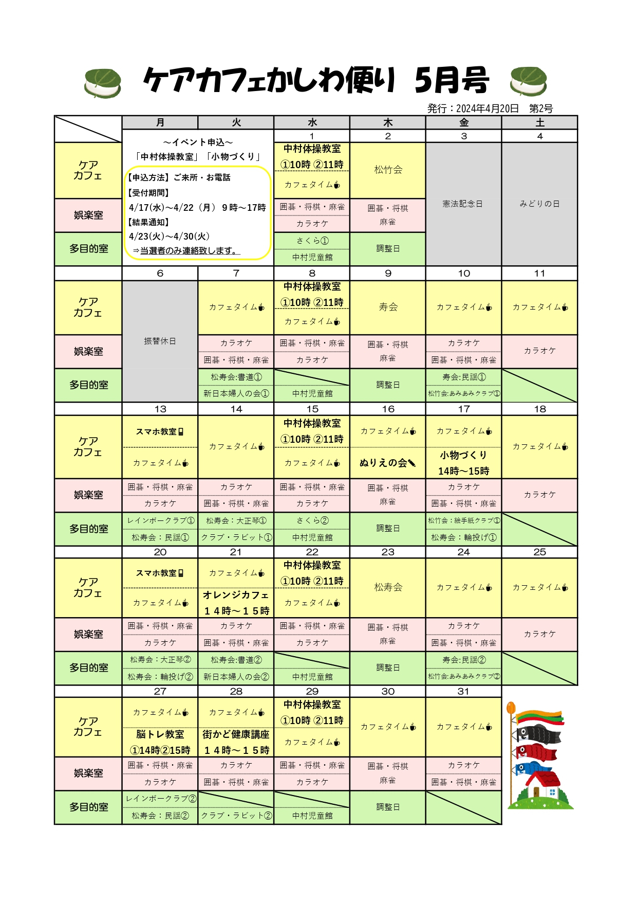 令和6年5月のケアカフェのスケジュール表が出来ましたのでお知らせします!
