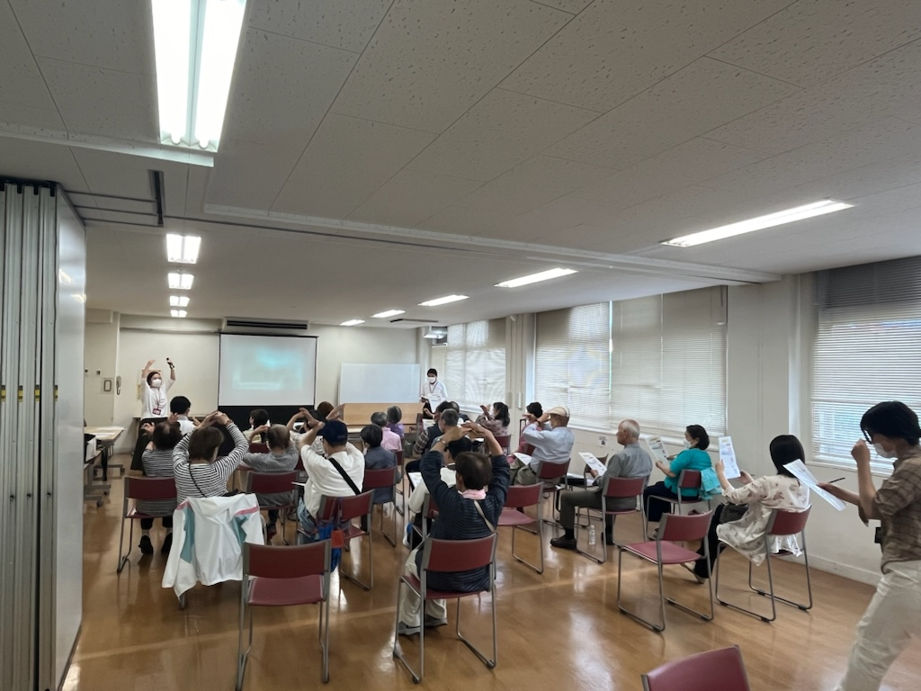 今回は、毎年恒例の血管年齢測定会(血管年齢測定/握力測定/サチュレーション測定)を行い、測定後、血管の健康に関する〇×クイズ、生活習慣改善のポイントをお伝えし、最後に全員で「なかの元気アップ体操」を行いました。