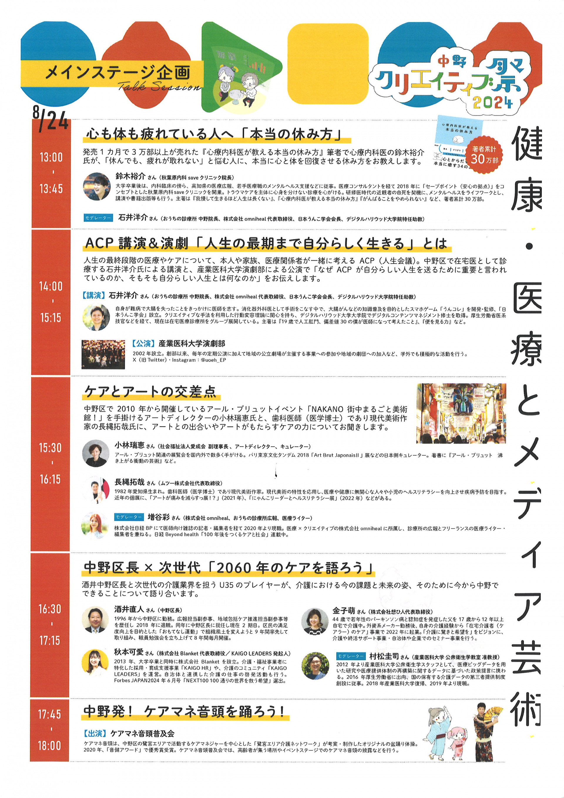 8月24日(土)12時~18時に 健康・医療とメディア芸術 中野クリエイティブ祭2024が開催されます。