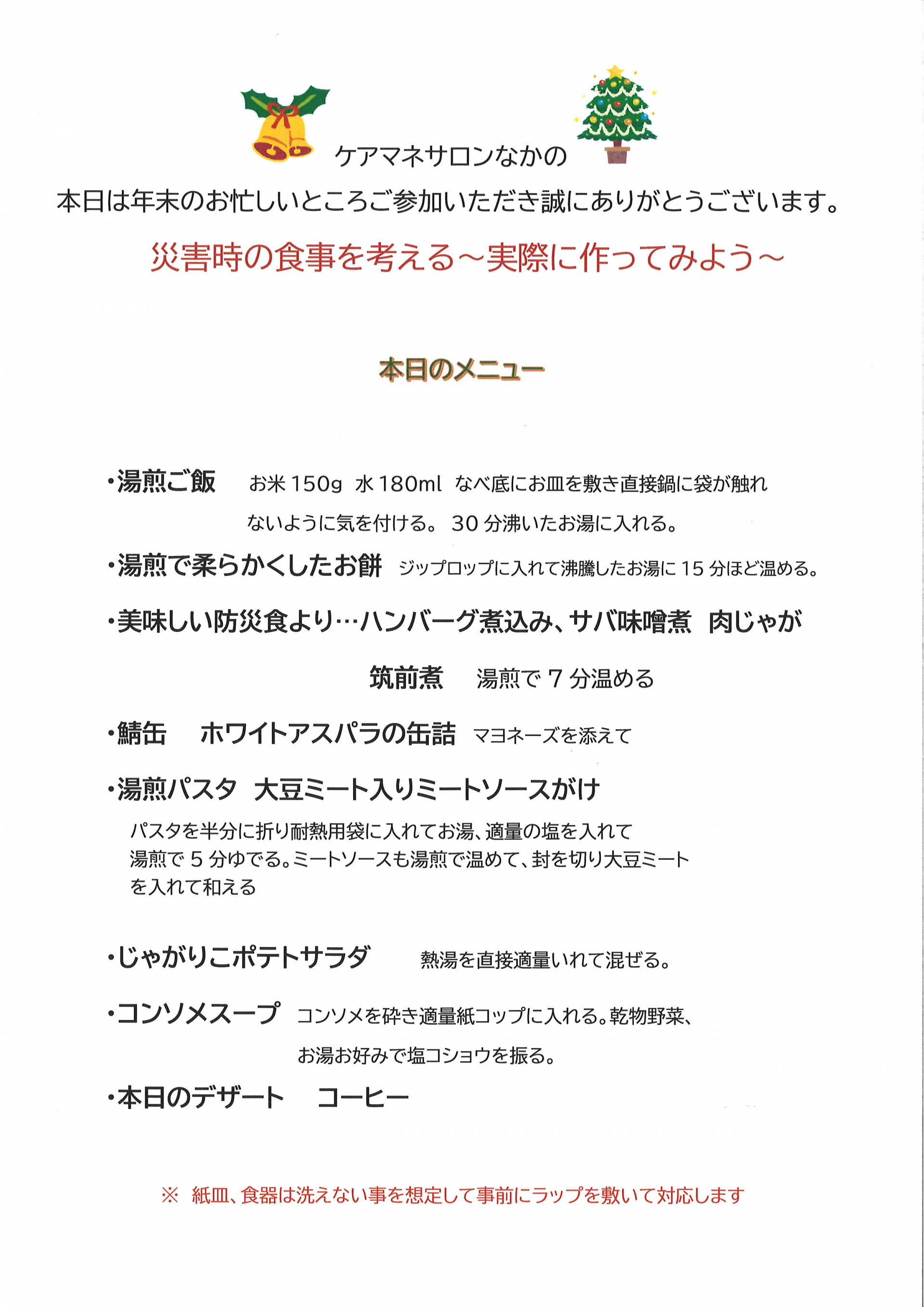 12月16日(月)に今年最後のケアマネサロンなかのを開催いたしました。