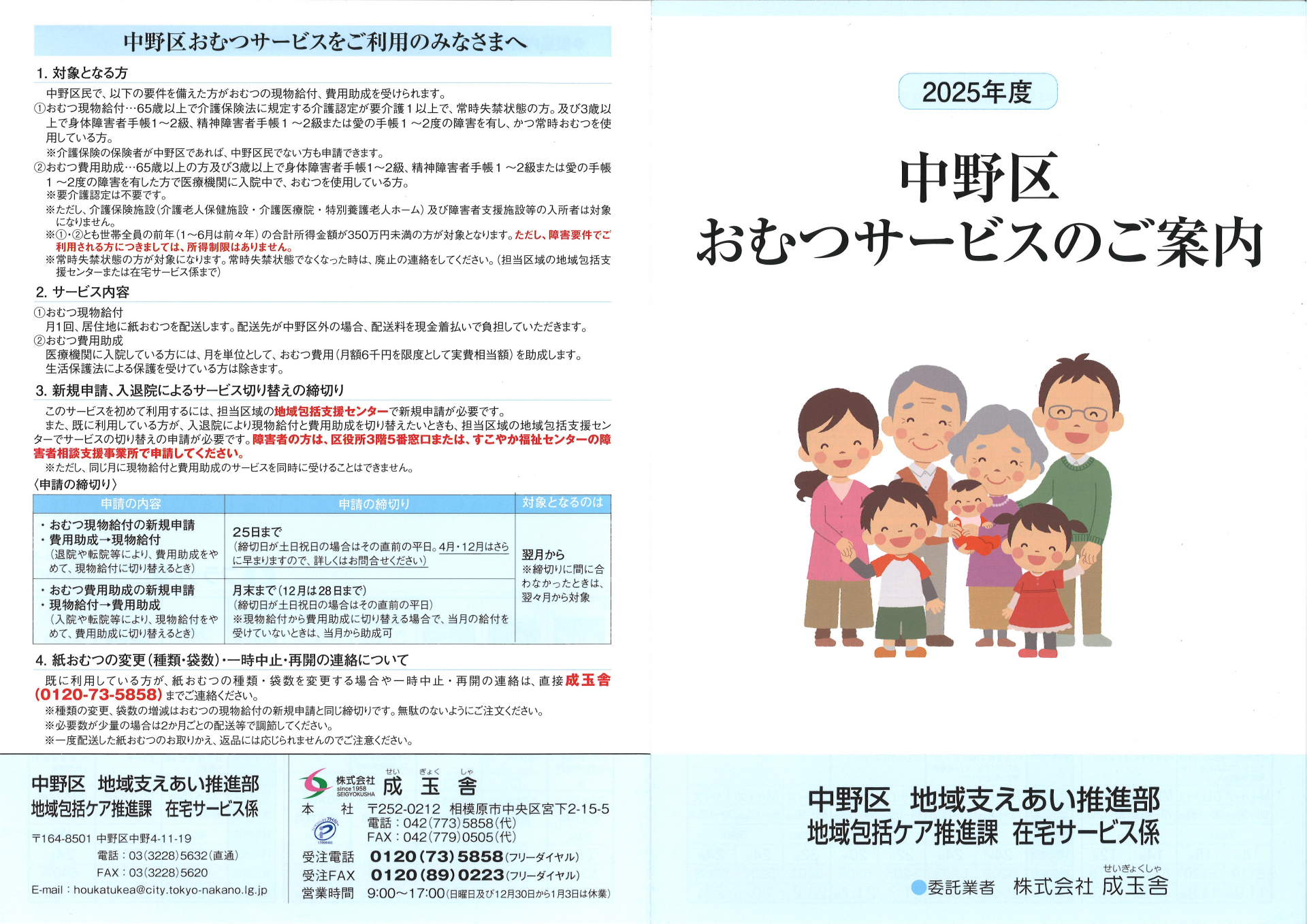 今年度の中野区おむつサービスについてのチラシを掲載しております。