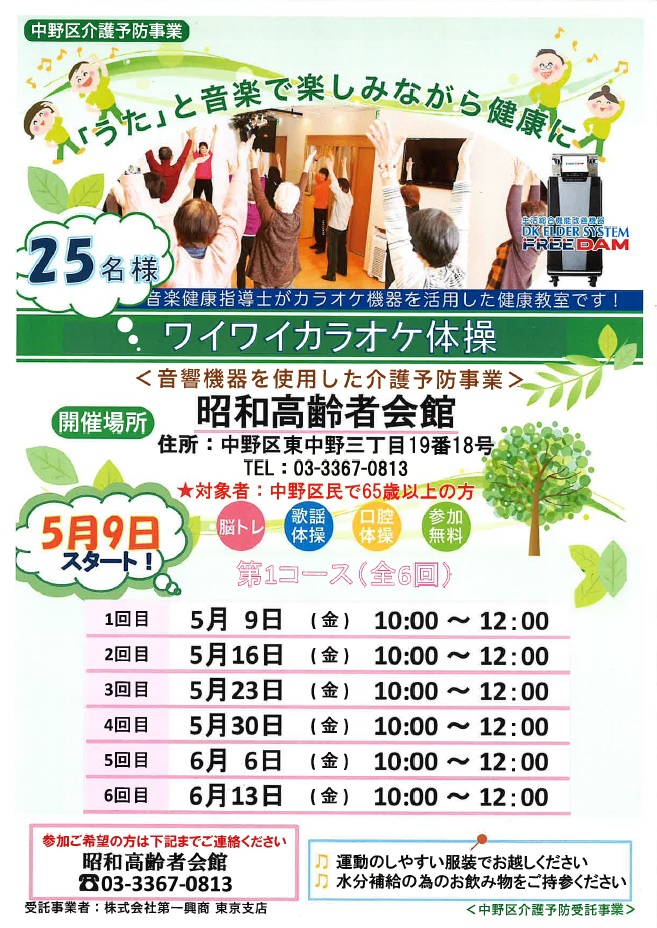 ワイワイカラオケ体操は5月から全6回のコースが開始します!歌や音楽を楽しみながら介護予防を始めましょう!!