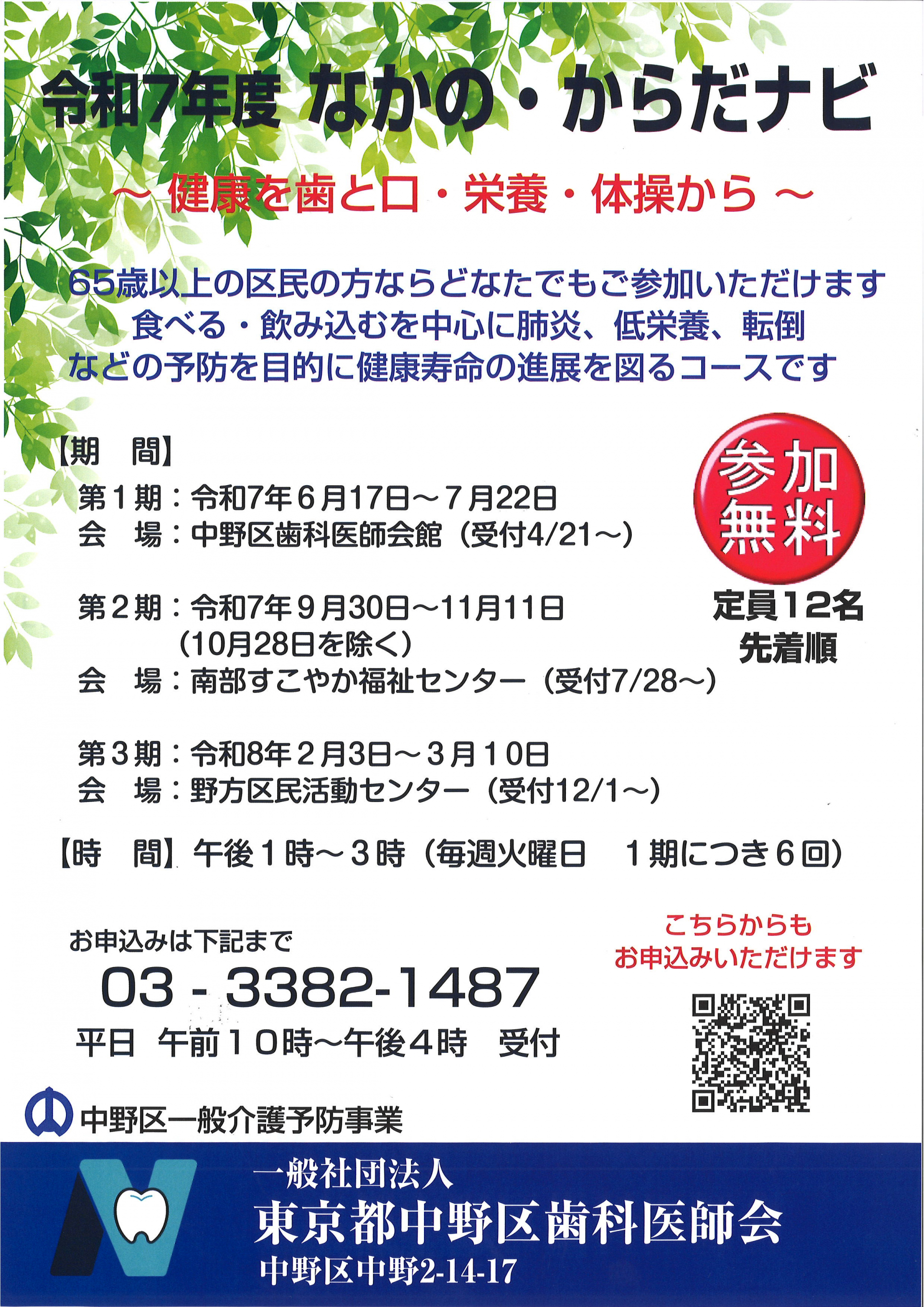 受付開始しておりますのでご興味のある方は03-3382-1487(中野区歯科医師会)までお問い合わせください!