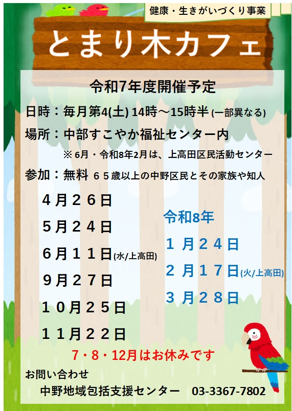 令和7年度「とまり木カフェ」年間スケジュールができました~(^^♪