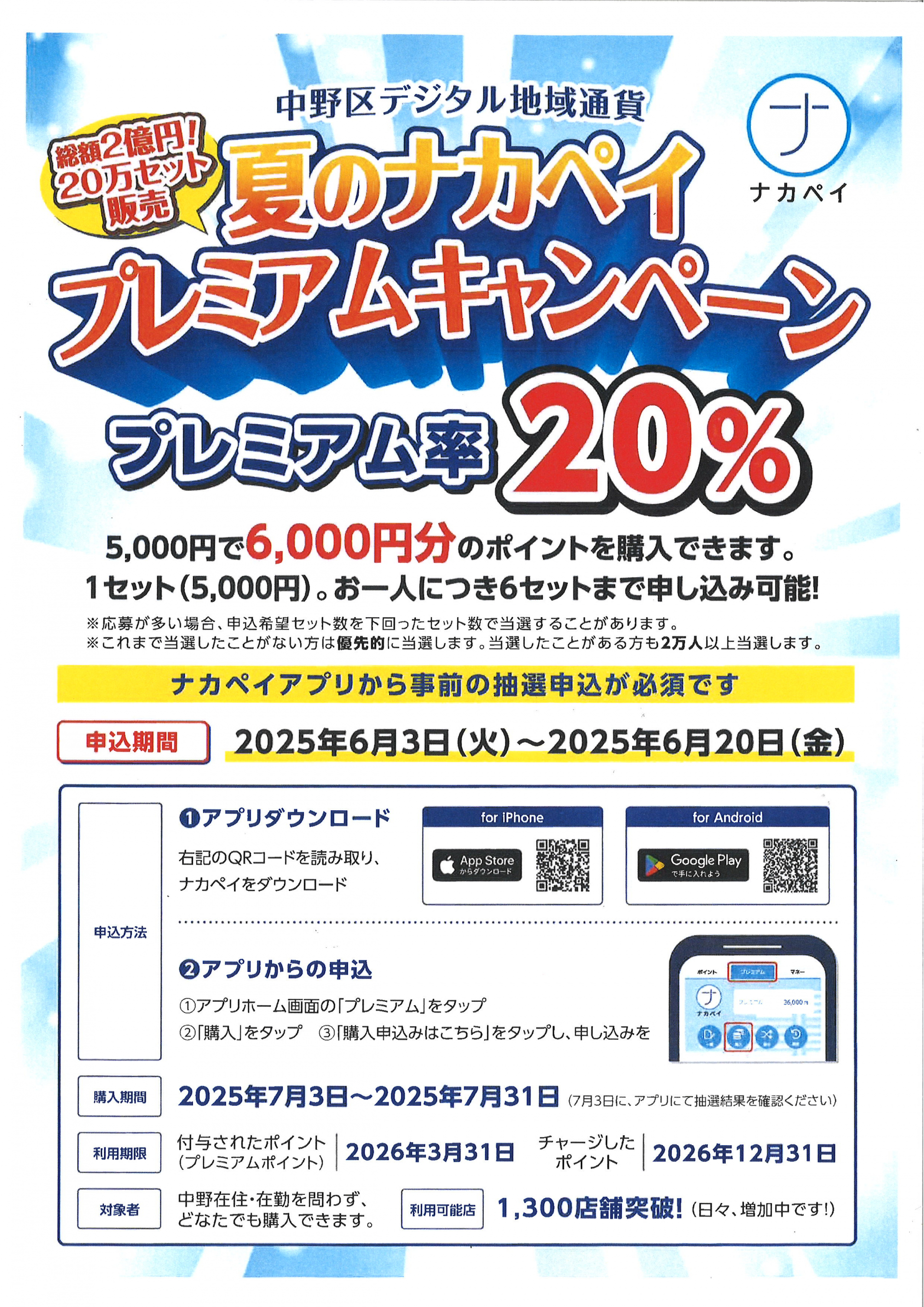 【中野包括】夏のナカペイプレミアムキャンペーン