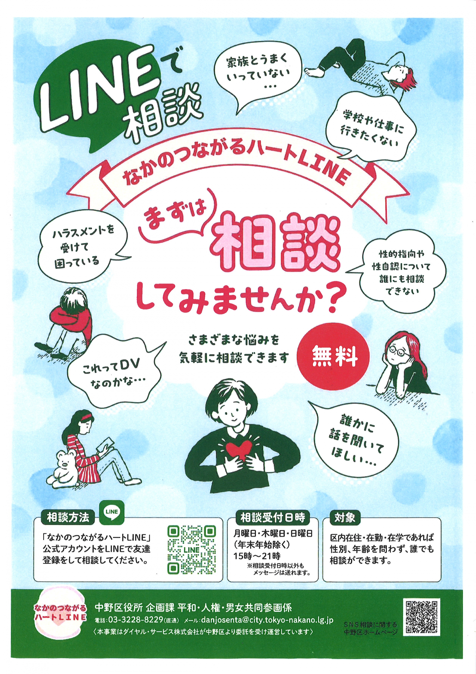 区内在住・在勤・在学であれば性別・年齢を問わず、誰でも相談できます。