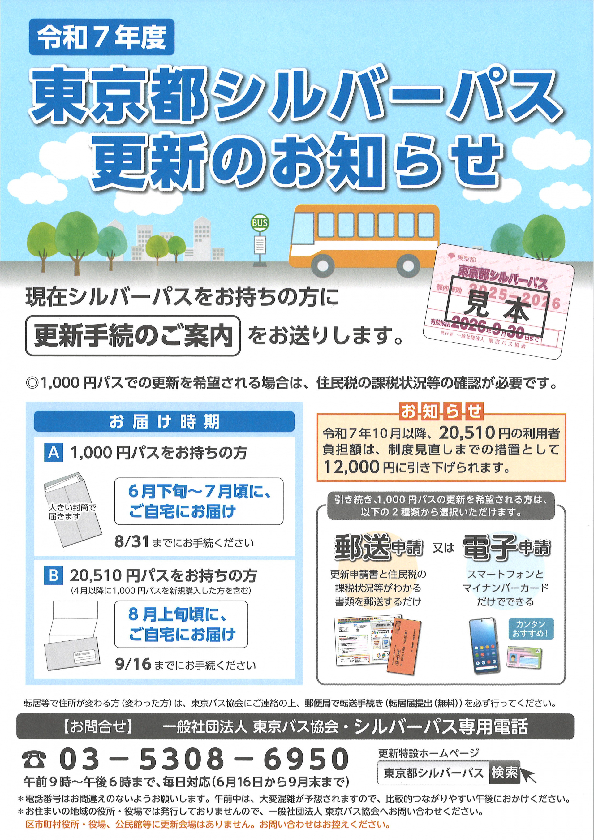 東京バス協会より現在、シルバーパスをお持ちの方に更新手続きの書類が送付されます。
