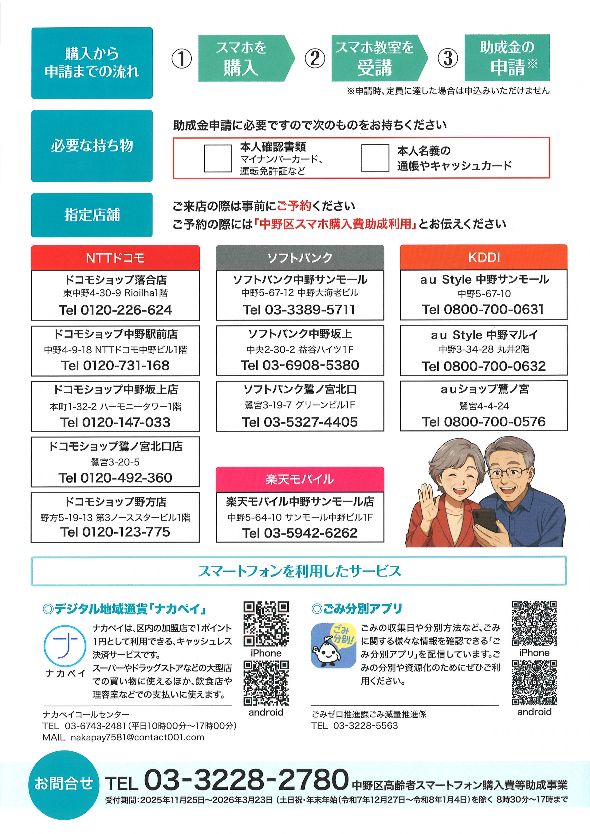 中野区高齢者スマートフォン購入費助成事業のご案内です。
