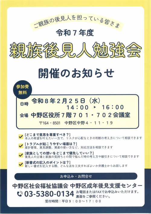 【中野包括】中野区高次機能理解促進セミナー