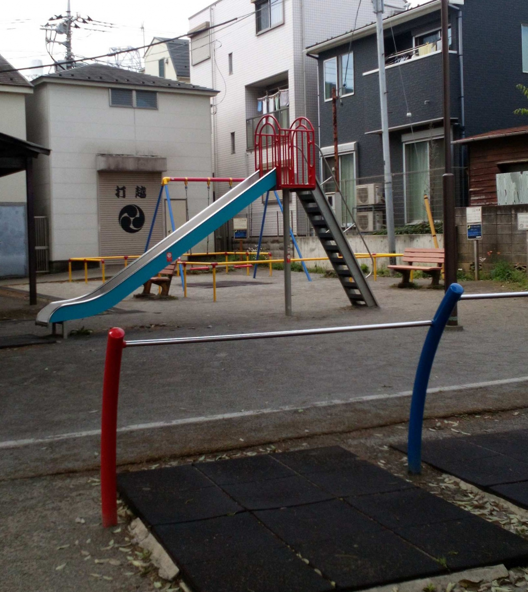 天神公園(東京都中野区中野5-3-6)は、遊具やベンチがあり、子どもが遊んだり、近くに住む人がひと息ついたりできる場所です。
