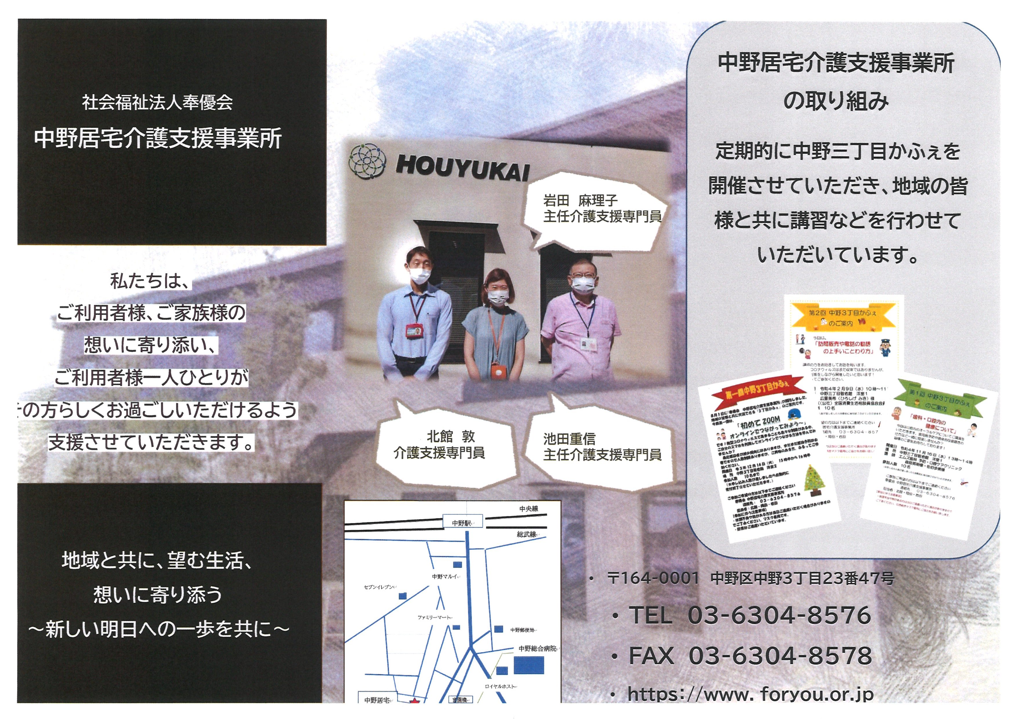 通常の事業実施地域は中野区の一部 中央1丁目~5丁目、東中野1~5丁目 、中野1~6丁目、 上高田1丁目~5丁目、 新井1丁目、野方1~5丁目 その他の地域は要相談