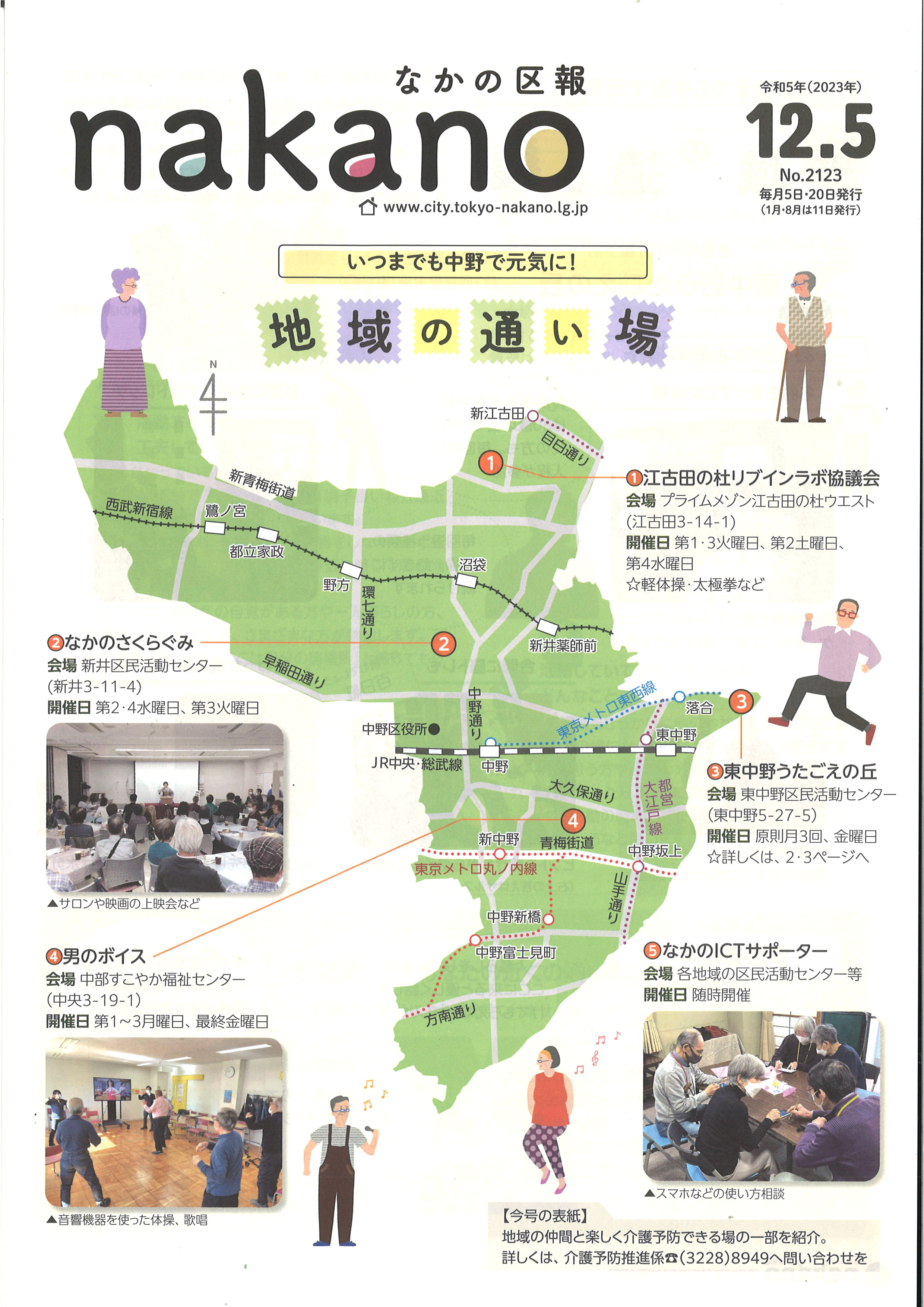 区内では、趣味活動を始めとした約50の地域団体が自主的に活動しています。地域で介護予防の活動をしている団体を紹介します。